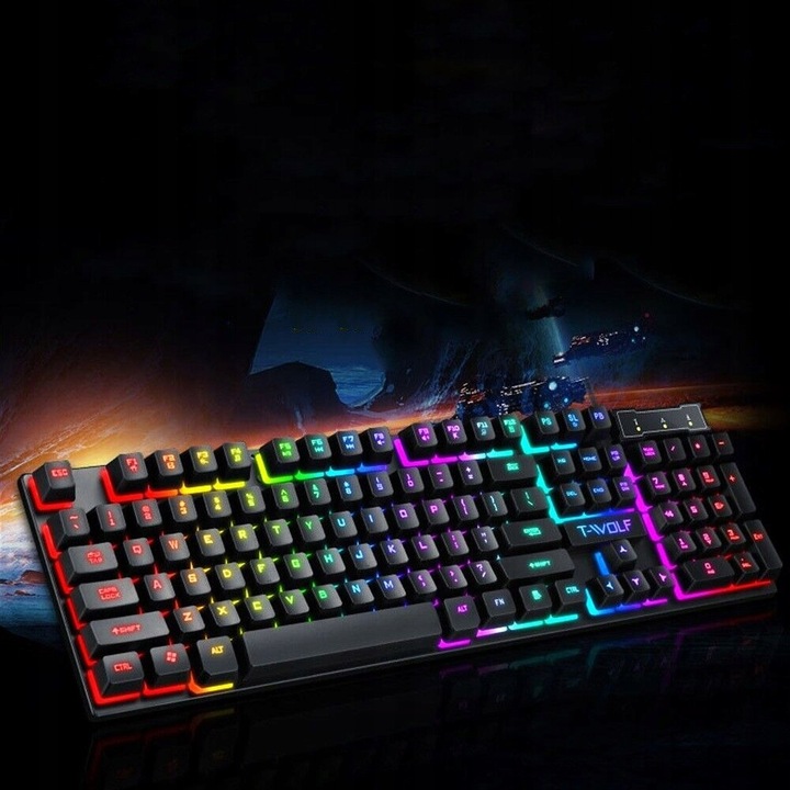 ✔️Ігрова клавіатура від T-Wolf була розроблена для геймерів. Виріб оснащено ергономічними клавішами з підсвічуванням і гібридним механізмом, подібним до того, що використовується в механічних клавіатурах, що значно покращує комфорт і ігровий досвід, а також забезпечує високу чутливість.