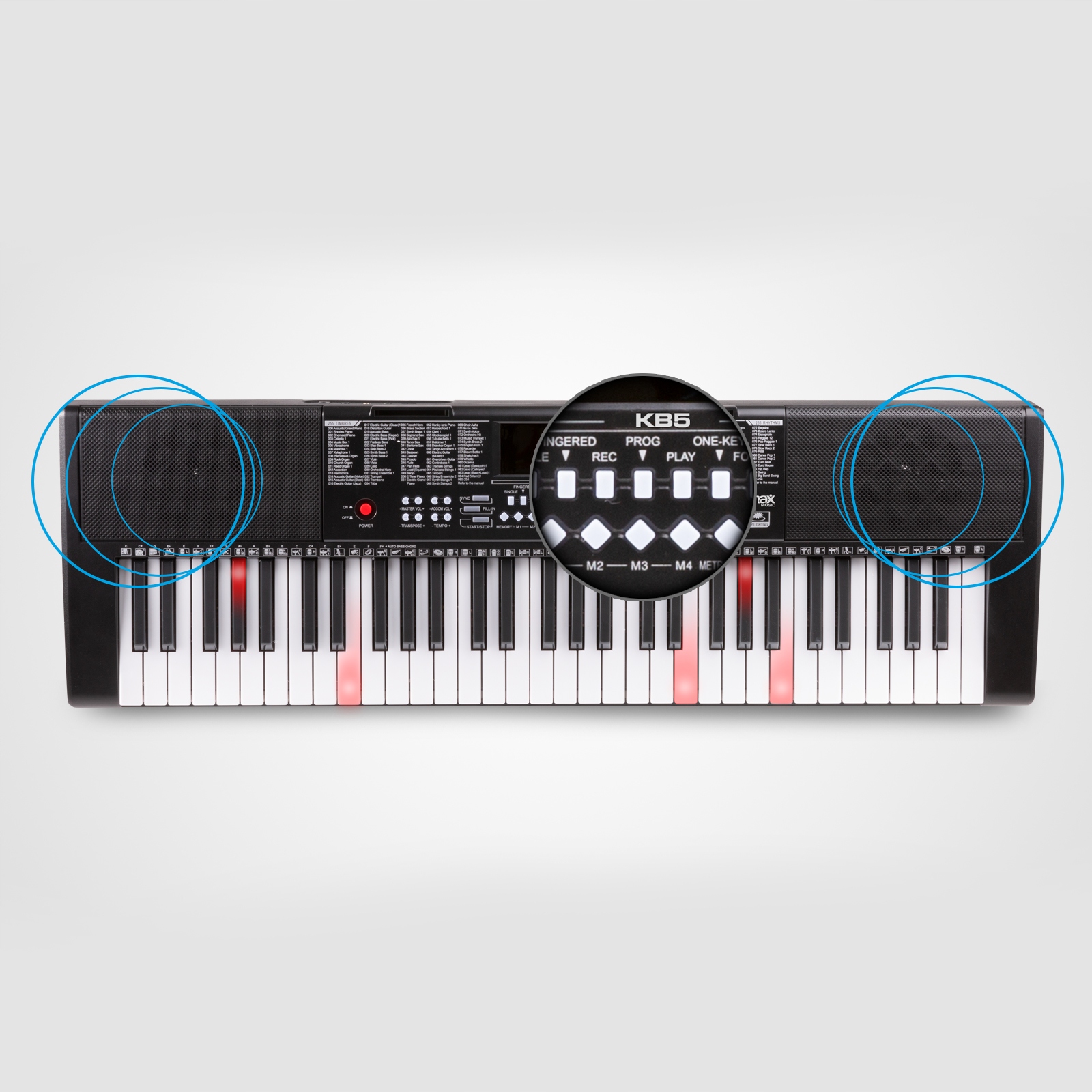KB5 — ідеальна клавіатура для навчання гри. Але навіть якщо ви більш просунуті, KB5 все одно є цікавим інструментом. Він має багато функцій і ефектів, тож ви не будете нудьгувати з KB5 навіть як просунутий гравець. Містить 255 звуків, 255 ритмів, 50 демонстраційних пісень, 61 різний звук барабанів, метроном, один акорд і акорд для пальців, запис і відтворення та багато іншого.