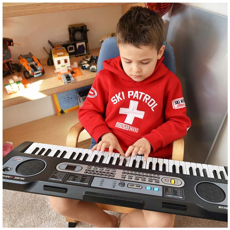 Keyboard MQ 6119 - це не лише клавішний інструмент. Обладнання має аудіовхід, завдяки якому ми можемо ➡️ підключити смартфон або зовнішній MP3-плеєр до клавіш і відтворювати улюблені пісні або фонову музику з колонок. Крім того, завдяки мікрофону, який входить в комплект, діти можуть відчути себе справжніми співаками, співаючи улюблені пісні. Клавіатура MQ 6119 також має ➡️ вихід для навушників для тихої гри.