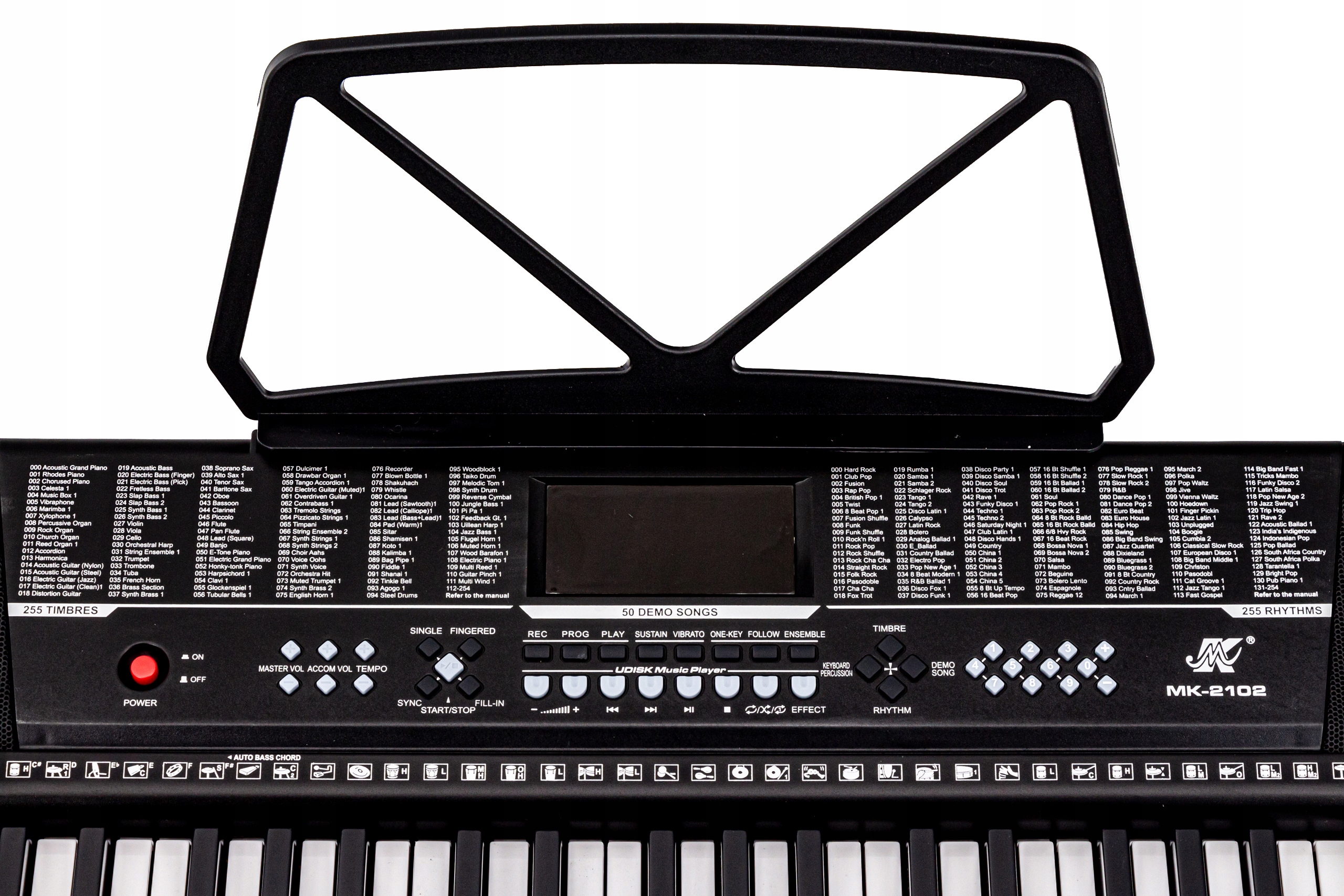 Ця клавіатура вражає своєю багатою бібліотекою, що містить до 50 різних демонстраційних пісень. Кожна з цих пісень є ідеальним прикладом різних музичних стилів і технік гри на клавішних. Діти та музиканти-початківці можуть використовувати ці пісні, щоб вивчати різноманітні звуки та мелодії та вивчати різні техніки гри. Ці демонстраційні пісні є джерелом натхнення та чудовим навчальним інструментом, який дає змогу відкривати різні аспекти музики та розвивати свої музичні навички весело та цікаво. Завдяки їм користувачі також можуть черпати натхнення для створення власних пісень і композицій. Це ідеальна клавіатура для тих, хто хоче розширити свої музичні знання та дослідити різні музичні жанри.