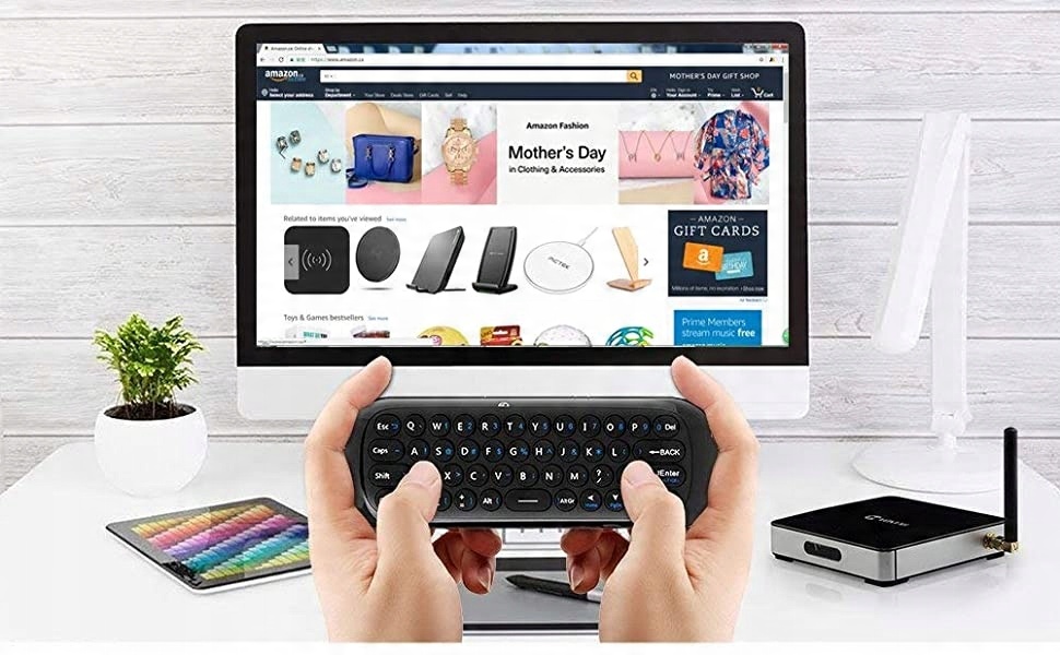 - ОДИН ПРИСТРІЙ, БАГАТО ЗАСТОСУВАНЬ : Air Mouse — це практичний пристрій, який включає в себе функції клавіатури, пульта дистанційного керування та миші! Бездротове з'єднання за допомогою адаптера забезпечує стабільне з'єднання на відстані до 10 метрів.