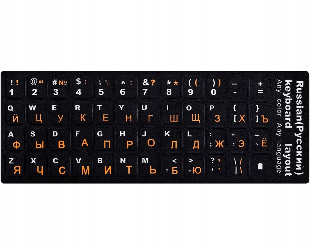 Наклейки на клавіатуру - це продукт, який дозволить вам оновити зовнішній вигляд вашого пристрою та змінити розкладку клавіш - наклейки містять як символи QWERTY, надруковані білим кольором, так і кирилицю оранжевого кольору. Міцний клей і висока якість використовуваних матеріалів забезпечують тривалий термін служби. Виріб є пило- та водонепроникним, тому захистить ваш пристрій від бруду. Наклейки ідеально підходять як для стандартної, так і для клавіатури ноутбука.