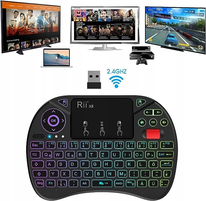 USB -приймач - це стандартний пристрій HID. Добре працює з Smart TV, TVBox, Xbox, PC у Windows 10/8/200/XP/Vista/CE, 7, iOS, OS Linux тощо