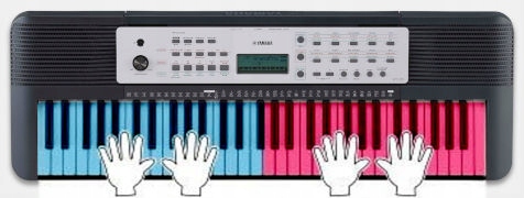 DUO MODE - поділ клавіатури для гри в 4 руки як на двох клавіатурах. Можна грати в дуеті. Дуже корисна функція для практики з учителем.