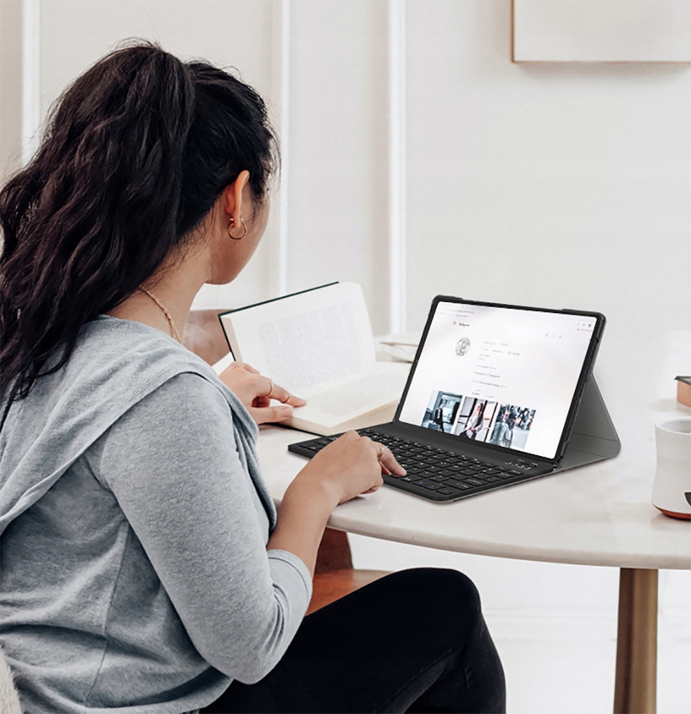 - Чохол має вбудований магніт, який з’єднує клавіатуру з футляром. Ви можете будь-коли від’єднати клавіатуру від футляра та працювати подалі від планшета.