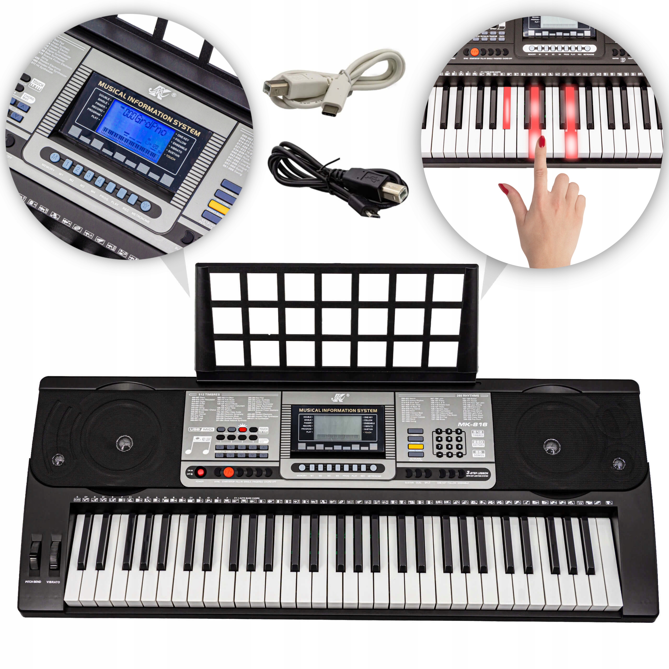 Keyboard Organ Piano 61k MK-816 пропонує багато різних звуків, музичних стилів і ефектів, що дозволяє створювати різноманітні музичні композиції.