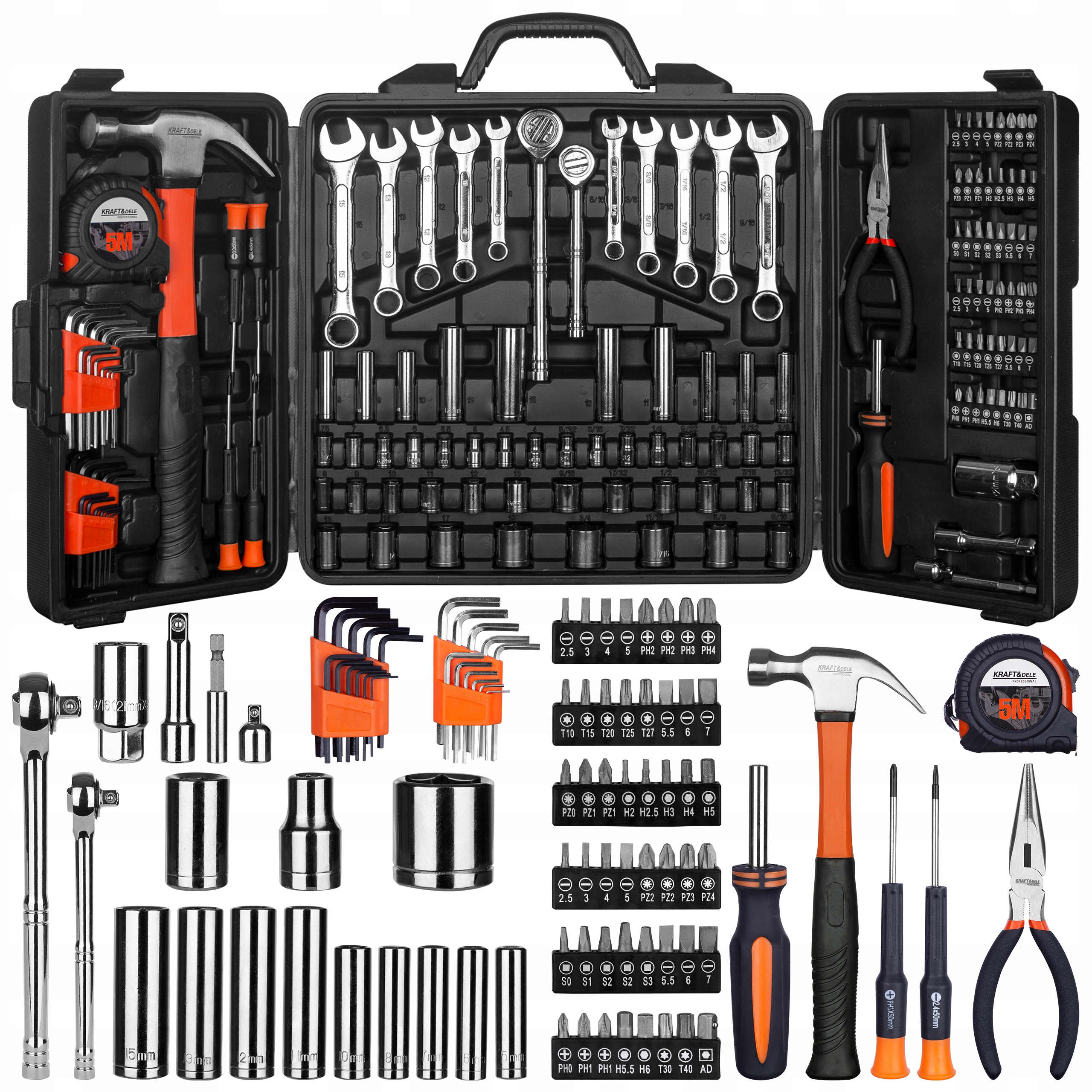 ✅ Найбільш набір складається з 140 різних елементів, які забезпечать правильний вибір інструменту для ваших потреб. Інструменти виготовлені із загартованої сталі Chrome-vanadium (CRV) для інструментів для майстерні.