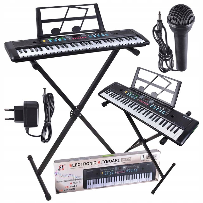КЛАВІШНИЙ ОРГАН ПІАНІНО ДЛЯ ВИВЧЕННЯ 61 КЛАВІШ ДЛЯ ДІТЕЙ + МІКРОФОН + ПІДСТАВКА