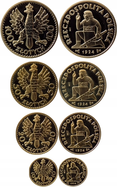 KLĘCZĄCY RYCERZ ZESTAW 100, 50, 20, 10 ZŁOTYCH 1924 (MW)
