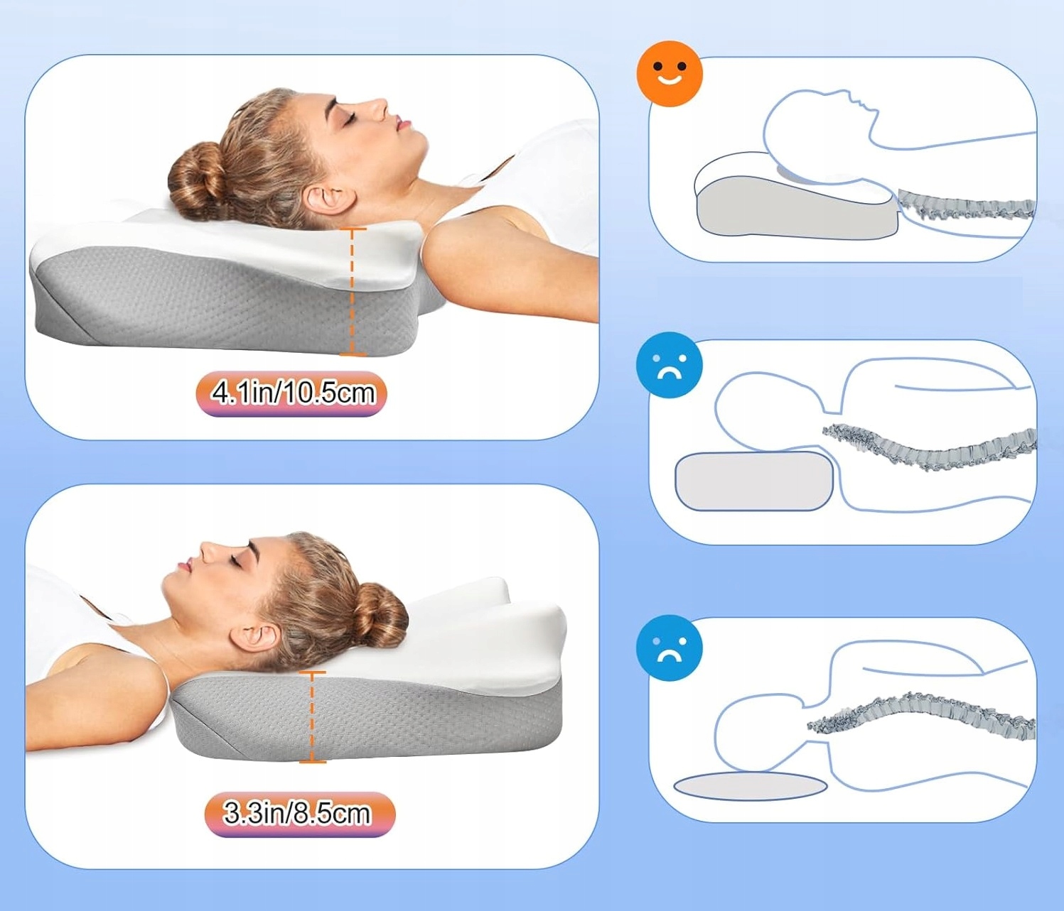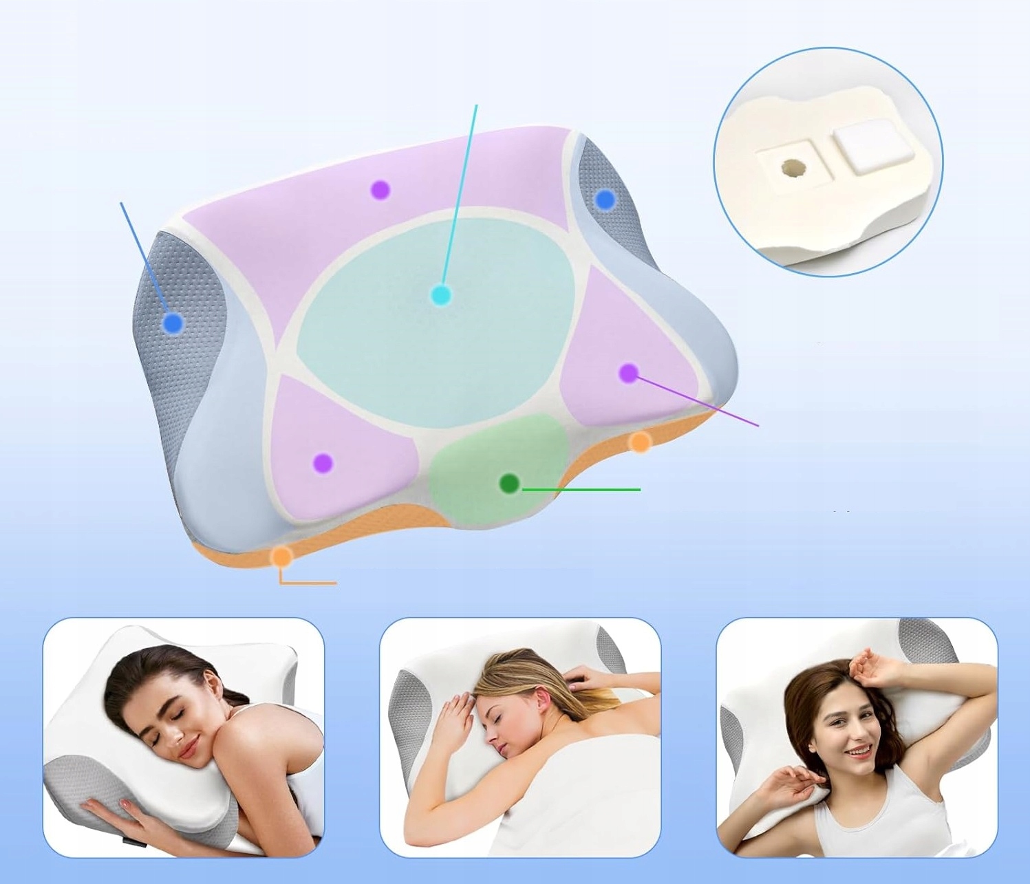 вдосконалена, ергономічна подушка, що підтримує шию - почніть свою подорож без болю в сну. Порівняно з іншими подушками підтримки шиї, подушка Clefiva має найкориснішу, порожню форму метелика, яка заспокоює 80% болю в шиї, спині та плечах. Наші ортопедичні подушки точно адаптуються до ергономічних форм і прилипають до голови та шиї у 95%, забезпечуючи необхідну підтримку.