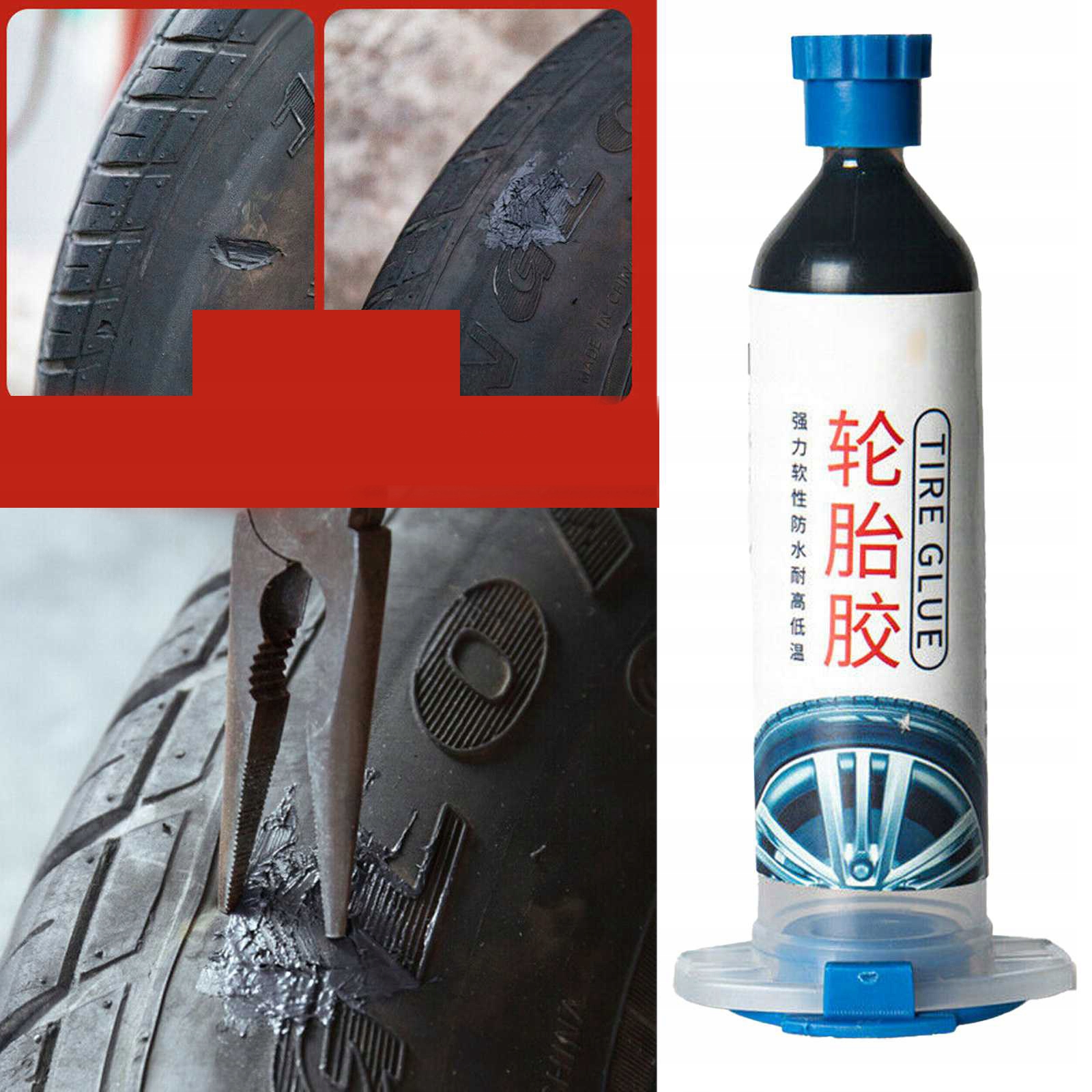 - Корисні поради: підходить для ремонту подряпин на гумових шинах, але не підходить для серйозніших випадків наприклад великі тріщини шин, діри та витоки повітря.