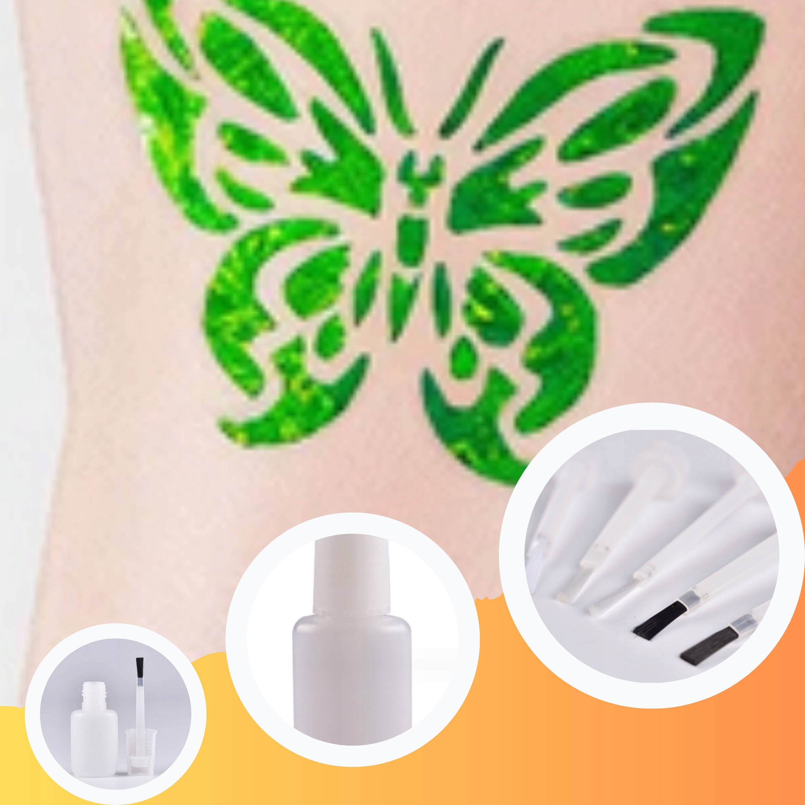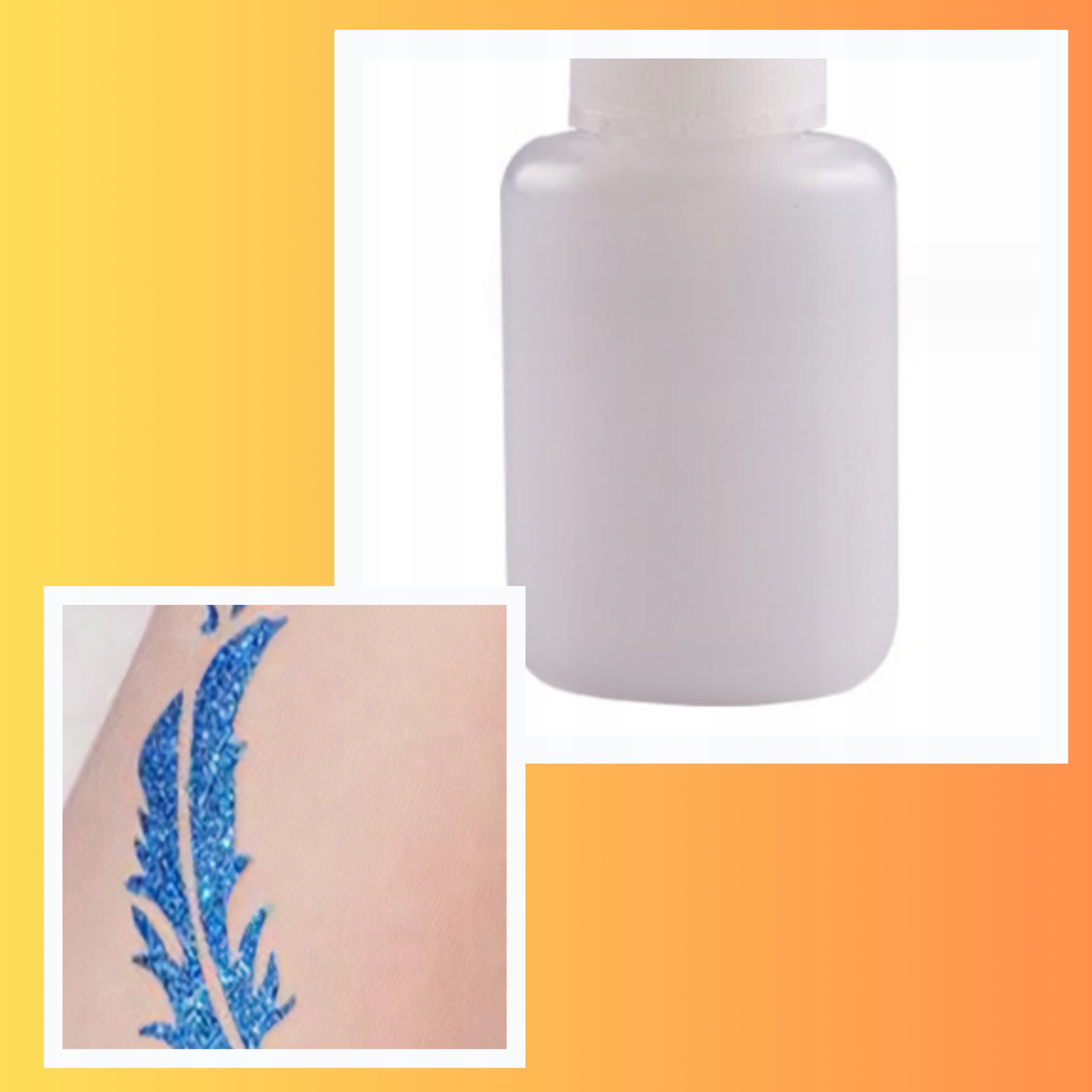 Клей для татуювання з блискітками необхідний, якщо ви хочете зробити довговічну та естетичну прикрасу тіла. Просто розкладіть його на вибраній ділянці і можете прикріпити кольоровий елемент. За допомогою клею можна створити тату з блискітками, цирконами або паперовими елементами. Це гаджет, призначений як для любителів, так і для професіоналів.