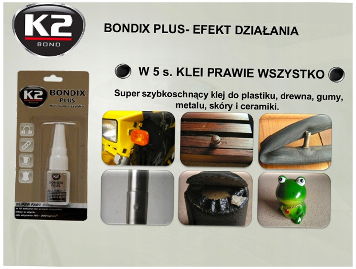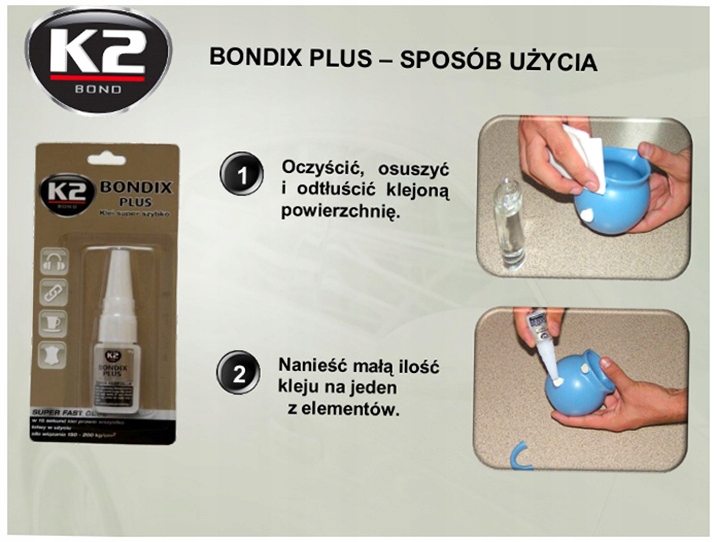 це однокомпонентний швидкодіючий клей, який склеює майже всі гладкі поверхні, які щільно прилягають одна до одної. Не потрібно змішувати або нагрівати. BONDIX PLUS не містить розчинників, має низьку токсичність, помірний запах і негорючий.
