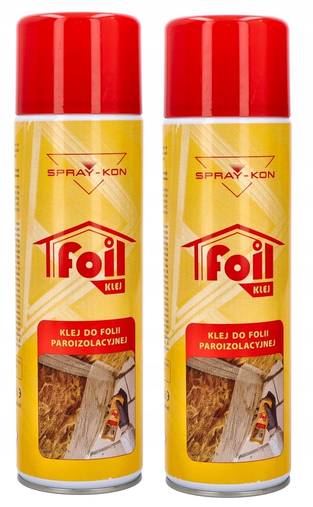 Spray-Kon FOIL — спеціалізований контактний клей, призначений для кріплення пароізоляційної плівки на профілі (CD, UD, CW, UW) в гіпсокартонних конструкціях. Клей також можна використовувати для склеювання фольги. Використовується також для приклеювання фольги до бетону чи дерева та для склеювання шматків фольги між собою. SPRAY-KON FOIL також використовується для кріплення пінопластових компенсаторів до стяжок підлоги.