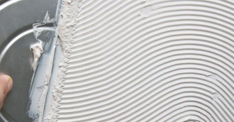 Спочатку нанесіть гладкий тонкий контактний шар на основу за допомогою кельми. Потім за допомогою відповідного зубчастого шпателя нанесіть тонкий клейовий розчин (можливо в одному напрямку) на свіжий контактний шар. Нанесіть стільки розчину, скільки можна покрити плиткою під час відкритого склеювання. Використовуйте кінчик пальця, щоб контролювати час утворення шкірки розчину.