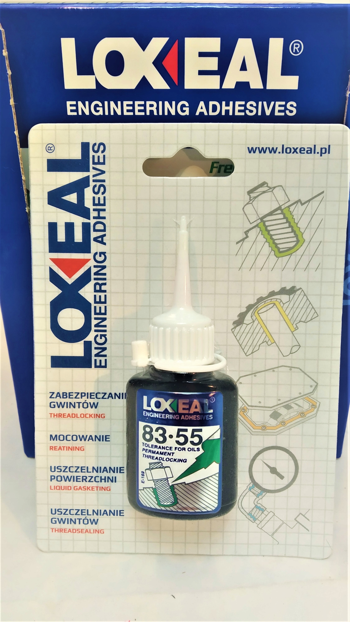 LOXEAL 83-55 - однокомпонентний анаеробний і тиксотропний засіб для захисту різьби середнього розміру від мимовільного ослаблення і відкручування, протікання і корозії. Продукт твердне після припинення подачі повітря (кисню) в зазор між двома металевими поверхнями (різьбою). Це особливо корисно там, де виникають максимальні навантаження на різьбове з’єднання (системи приводу, конструктивні частини, кріплення шпильок у фланцевих з’єднаннях) і на менш хімічно активних поверхнях (злегка змащених).