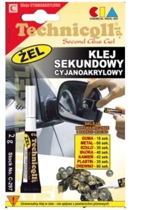 Однокомпонентний, безбарвний гелеподібний клей на основі етилціаноакрилату з найвищими технічними параметрами клею, зшивання під впливом вологи. Завдяки високій в'язкості і тиксотропним властивостям не стікає з вертикальних поверхонь і не поглинається пористими поверхнями. Він дуже міцно склеює метал, гуму, порцеляну та багато пластиків за кілька секунд.