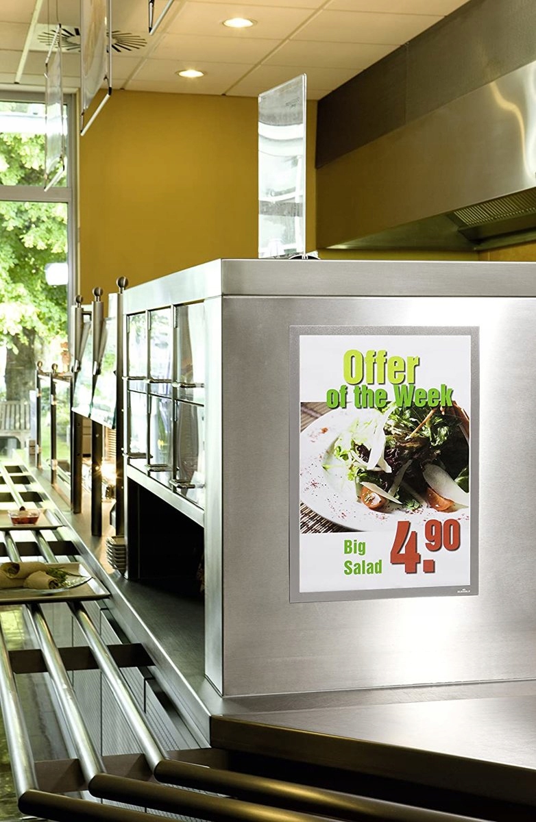 Duraframe — це самоклеюча презентаційна рамка, яка може використовуватися для відображення будь-якої інформації. Завдяки магнітному закриванню рамки документ можна оновити дуже легко та швидко. Також рамку можна використовувати для двостороннього викладення на скляних поверхнях. Duraframe можна легко відклеїти та знову прикріпити до всіх гладких і твердих поверхонь. Властивості: