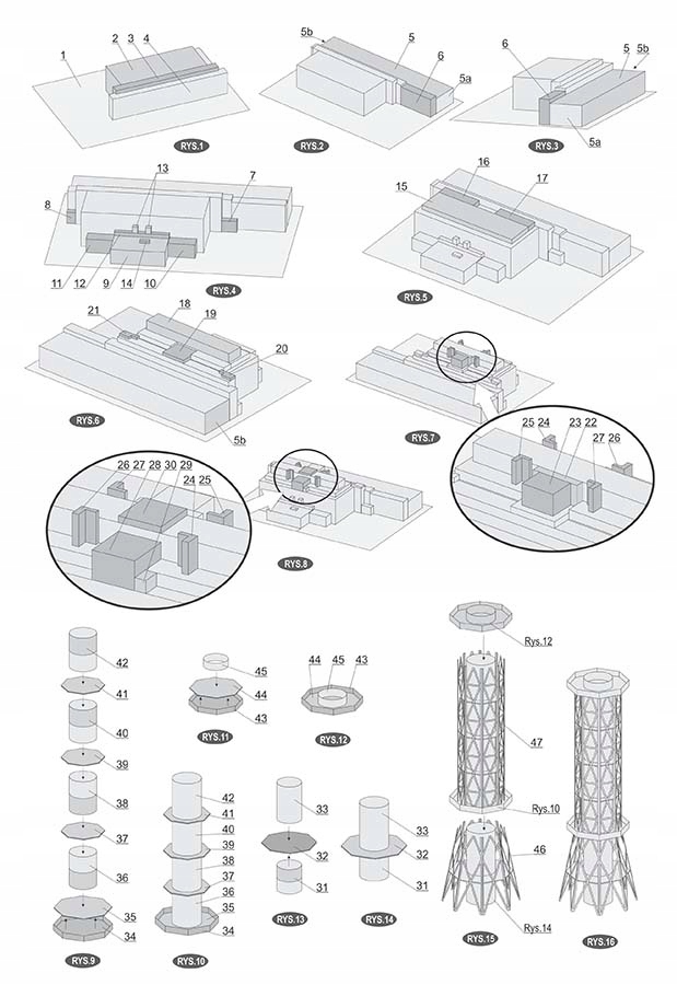 - чорно-білі «лінійні» складальні креслення - 18 креслень