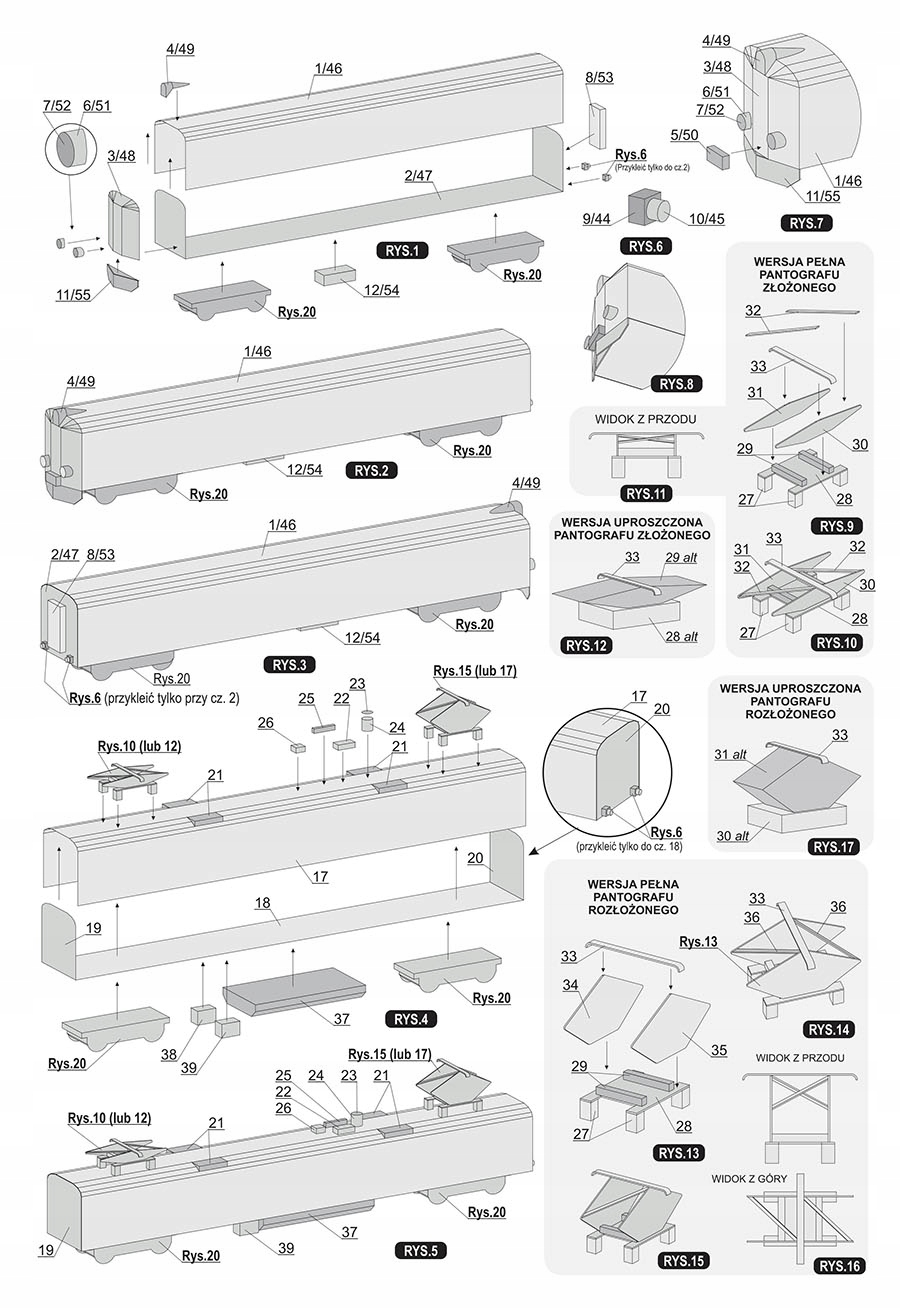 Це дещо складніша модель, порівняно з моделями залізниць, які раніше випускало видавництво SKLEJ-MODEL, через наявність великої кількості дрібних частини - такі як бампери між окремими вагонами, деталі даху, під'їздні східці або пантографи. Однак створення моделі не повинно створювати серйозних проблем для проміжних модельєрів. Модельєрам-початківцям рекомендується будувати модель під наглядом дорослих.