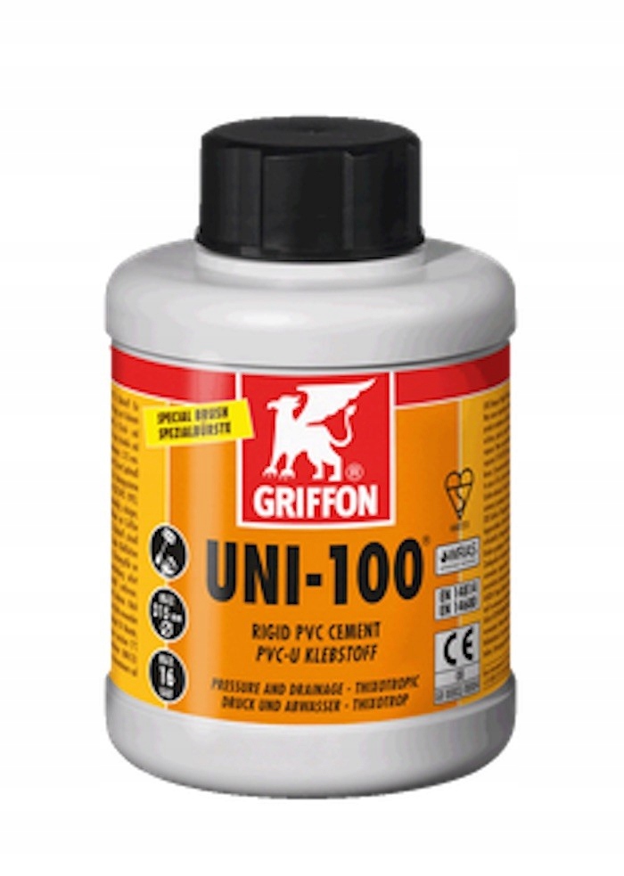 фланцеві з'єднання, фітинги з ПВХ (до PN 16) тощо. Griffon Uni-100 також можна