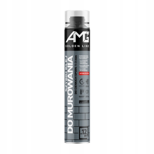 Поліуретановий AMG GOLDEN LINE Fast Bricklaying Adhesive призначений для використання в цегляних конструкціях зі швами товщиною 1-3 мм зовнішніх і внутрішніх стін.