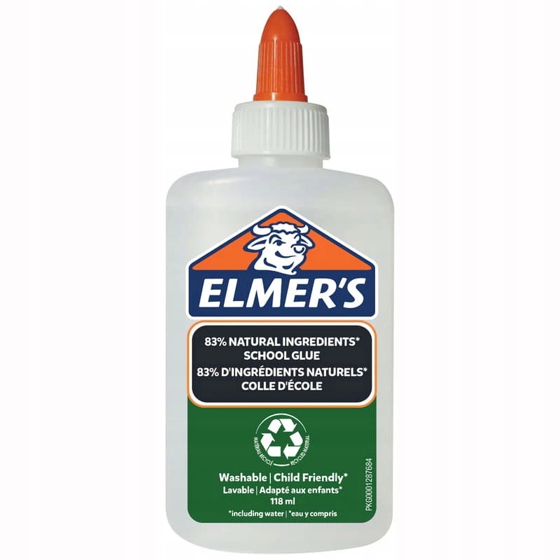 Прозорий шкільний клей Elmer є початком нової ініціативи, яка заохочує участь, освіту та віру в те, що є екологічним. Прозорі шкільні клеї Elmer складаються з більш ніж 83% натуральних інгредієнтів – матеріалів рослинного походження, а корпус клею виготовлений із 100% переробленого пластику.
