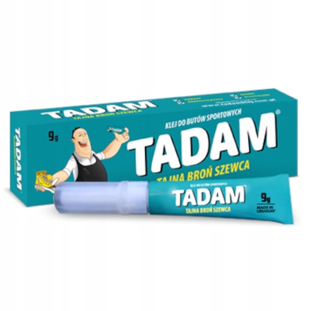 Тадам - це клей, призначений для склеювання спортивного взуття. Він прозорий і має консистенцію гелю.Миттєво склеює матеріал, залишаючи частину взуття гнучкою. Його можна використовувати, серед іншого, для ремонту: пальці, краї, п’яти, підошви та внутрішні шари.