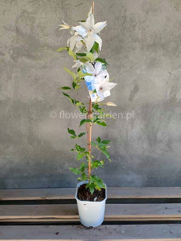сорт -польський сорт великі -флоури з красивими, надзвичайно великими, білими квітами. Підйом на підйом на опори за допомогою листових хвостів зростає до 2-3 м у висоту. Дуже великі квіти (з діаметром до 28 см), білим, з м'яко хвилястими краями. рясно цвіте в v - vii , пізніше повторює цвітіння , але трохи менше. Квіти покривають плазун зверху до основи.
