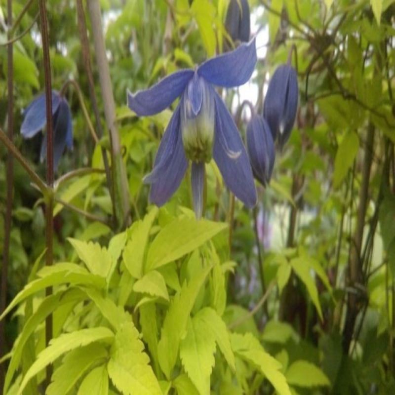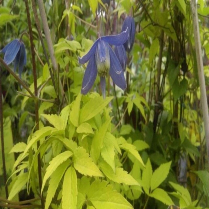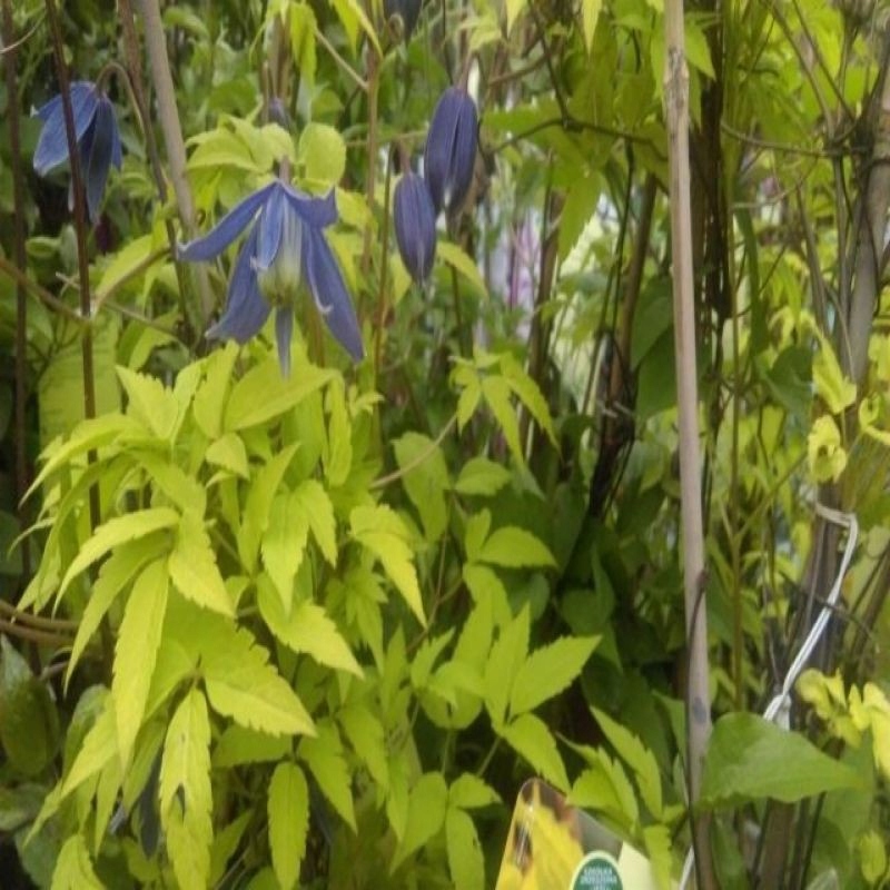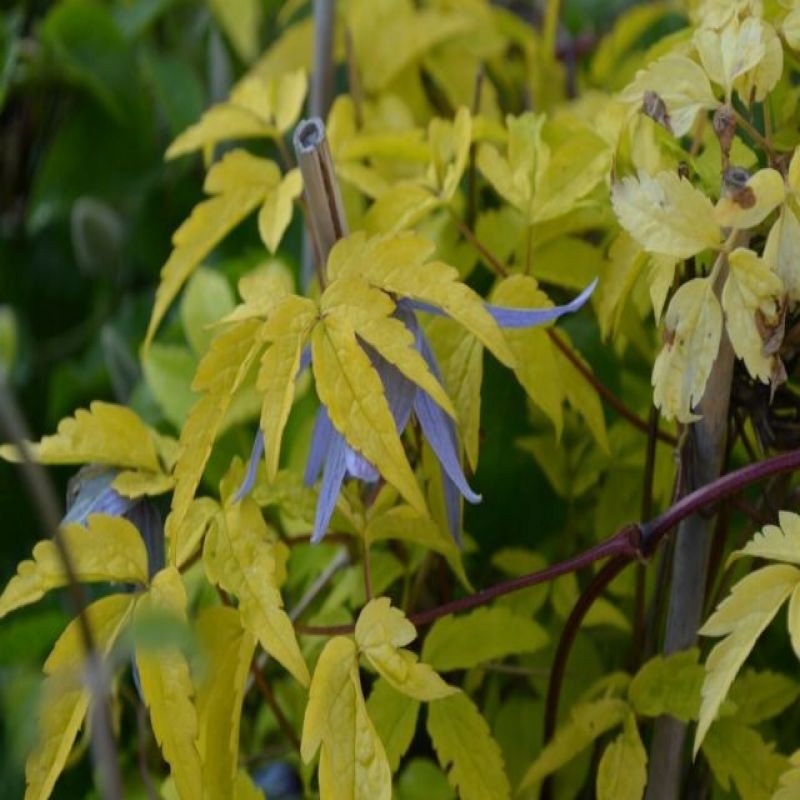 Перший і єдиний золотисто-жовтий листя сорту клематиса. Квіти дрібні СР. 5-6 см., пурпурно-блакитний, дзвониковий, красиво контрастує з жовтим листям. Цвіте в кінці квітня-травні, влітку повторює цвітіння, але слабше. З червня до осені рослина прикрашають химерні, пухнасті головки плодів. Виростає до 2-3 м у висоту. Виносить півтінь, але краще забарвлюється на добре освітлених місцях. Найкраще росте на середньородючих, помірно вологих, добре дренованих ґрунтах з рН від нейтрального до слабокислого. Рослина проста у вирощуванні, невибаглива і дуже морозостійка. Не потребує обрізки, тільки коригуюча зрізка відразу після цвітіння, коли сильно розростається. Придатний для вирощування біля старих пнів, каменів і невисоких парканів, а також листяних або хвойних чагарників. Може використовуватися як грунтопокривна.