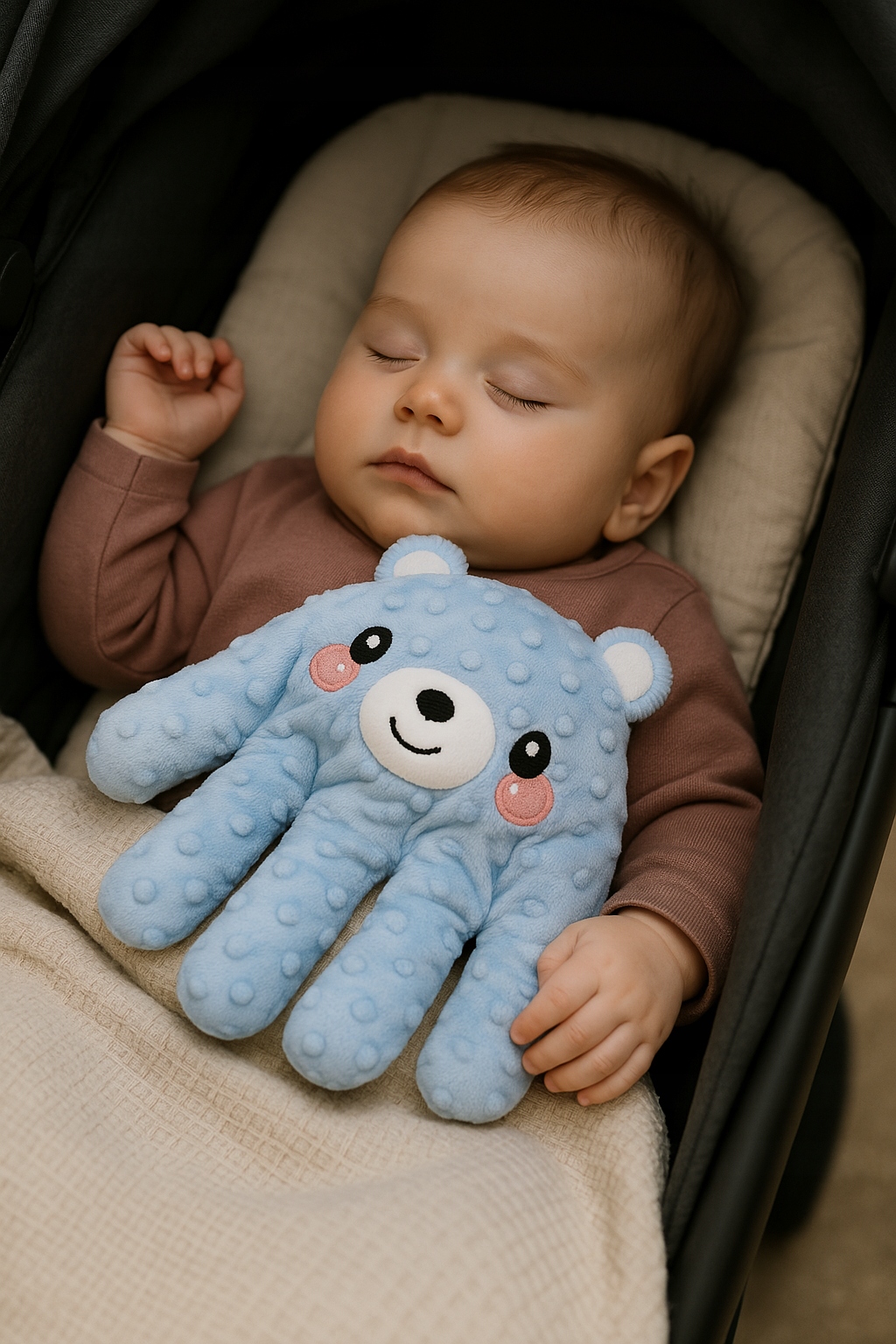 оснащений делікатним механізмом, який автоматично погладжує дитину по спині , імітуючи рухи матері чи бабусі - допомагає дитині заспокоїтися і спокійно заснути.
