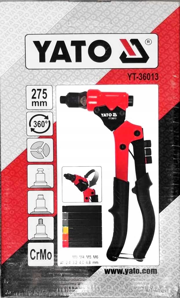 Заклепальник із головкою, що обертається на 360°, дозволяє працювати в зручному положенні навіть у важкодоступних місцях. Це дозволяє з’єднувати заклепками та заклепковими гайками, різати матеріали та розширювати отвори.