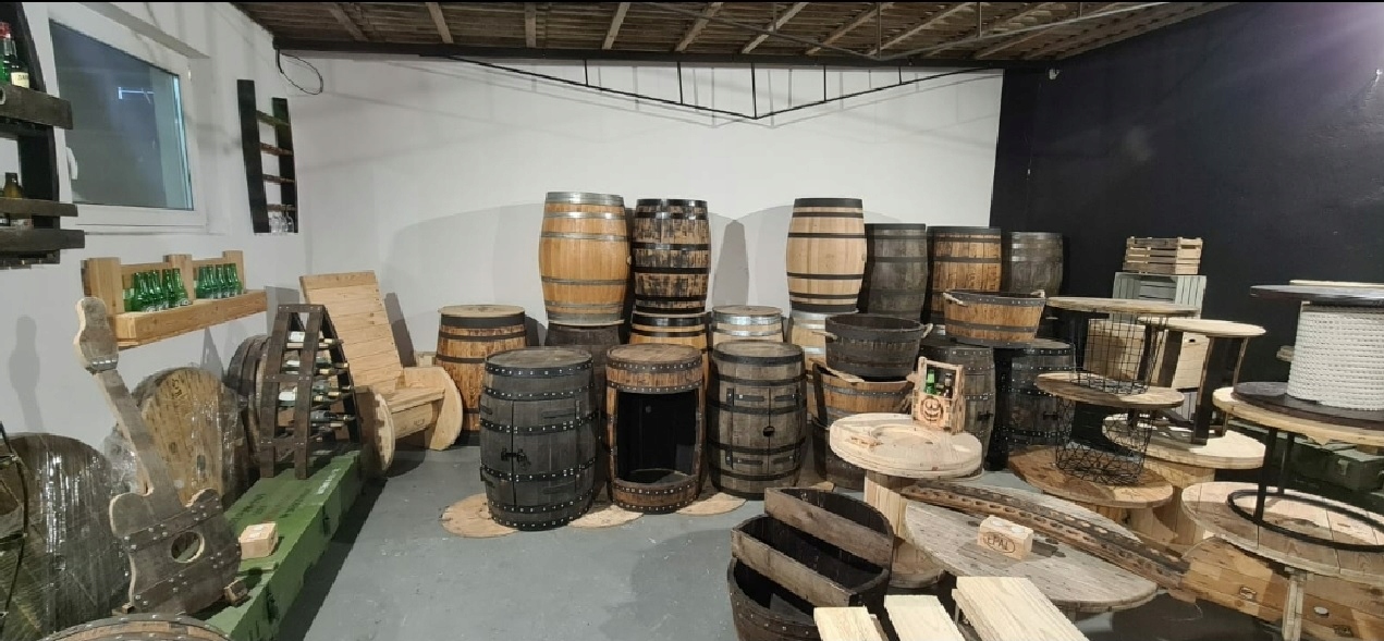 У продажу є широкий асортимент товарів: військові скрині, годинники , дзеркала, стільці, табурети, столи, дубові бочки для вина, бочки для віскі (200л, 225л, 500л), полиці для пляшок, лавки, свічники, дерев'яні дошки, дерев'яні котушки, стільниці