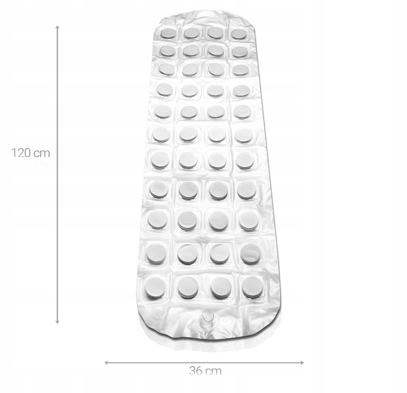 Боїтеся, що килимок не підійде до вашої ванни? Ви не повинні! Масажний килимок має універсальний розмір: 36 х 120 см, що дозволяє розмістити його навіть у найменших ваннах. Ви можете легко прикріпити його до дна за допомогою присосок - просто спочатку змочіть їх водою. Стійко розміщений килимок дозволить вам комфортно відновити сили та розслабитися, коли захочете зануритися в гарячу воду з бульбашками.