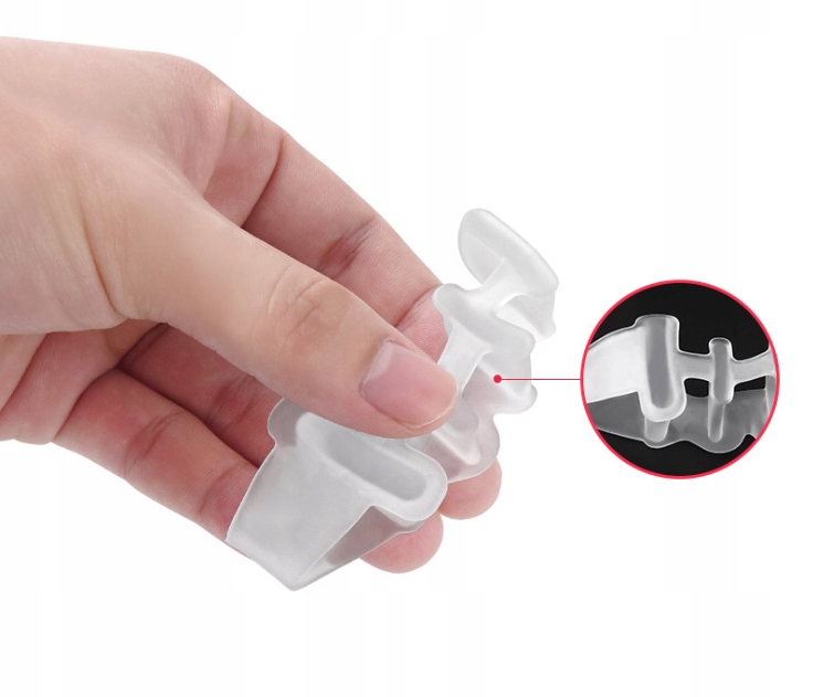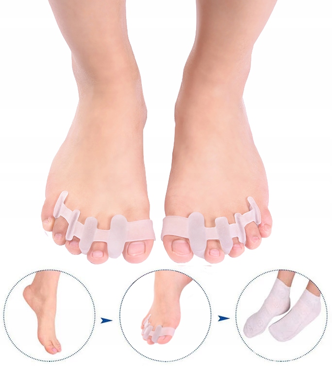 - Силіконовий клин між великим пальцем ноги та іншими пальцями форсує правильне положення великого пальця ноги, що при тривалому використанні призводить до корекції вальгуса