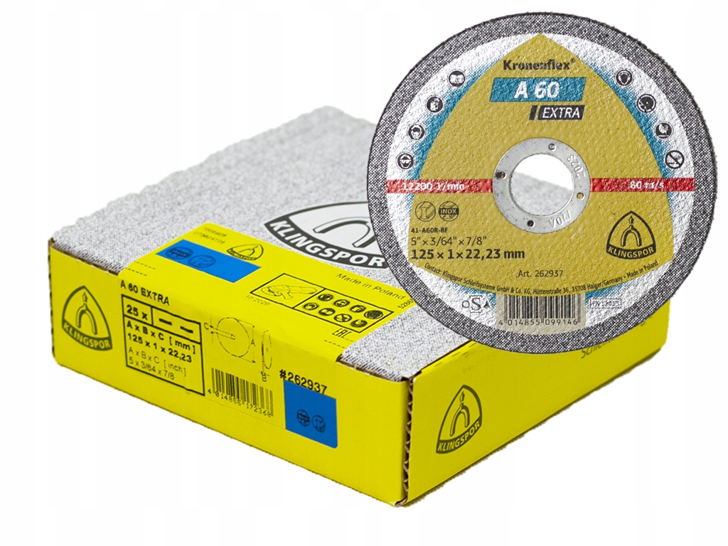 Просматривая «KLINGSPOR A60 INOX 125X1 ПИЛА ПО МЕТАЛУ», вы можете быть уверены, что данный товар из каталога «Режущие диски» будет доставлен из Польши и проверен на целостность. В цене товара, указанной на сайте, учтена доставка из Польши. Внимание!!! Товары для Евросоюза, согласно законодательству стран Евросоюза, могут отличаться упаковкой или наполнением.