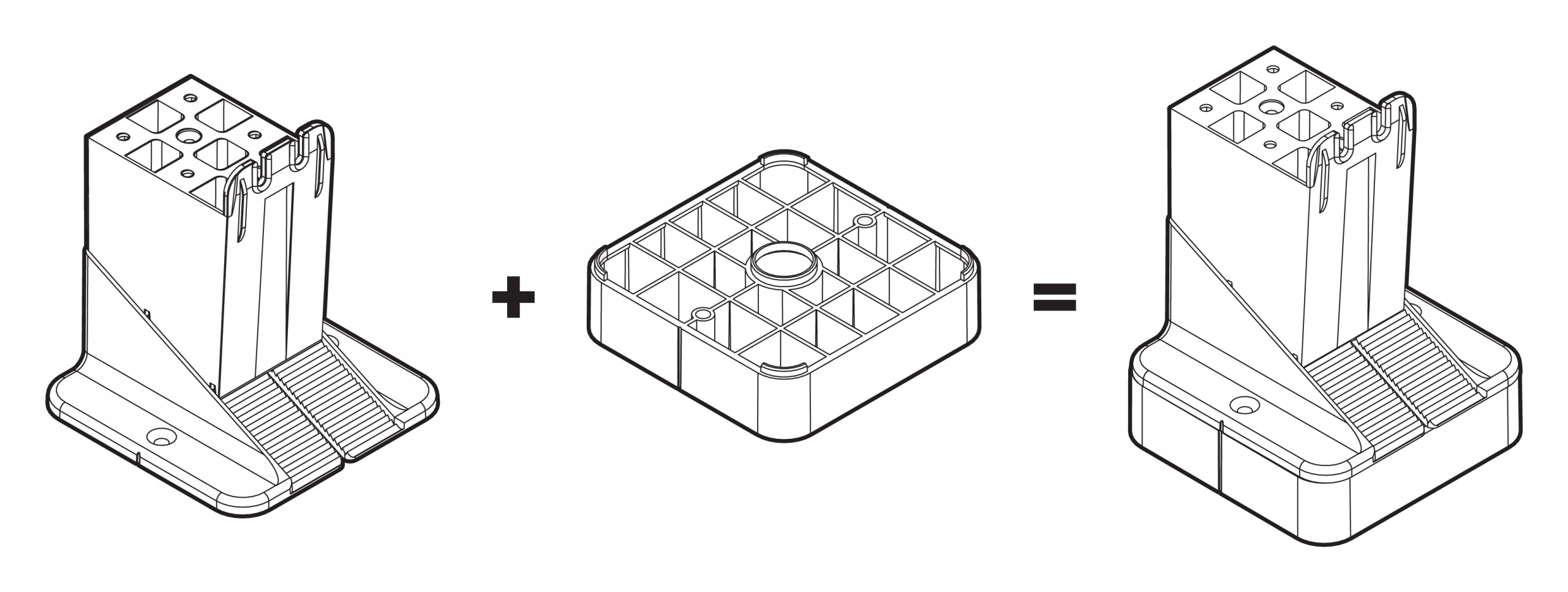 Кронштейни RAPTOR складаються з двох основних елементів - клина та основи. Висота від 125 мм створюється шляхом додавання подовжувальної основи до основних опор.