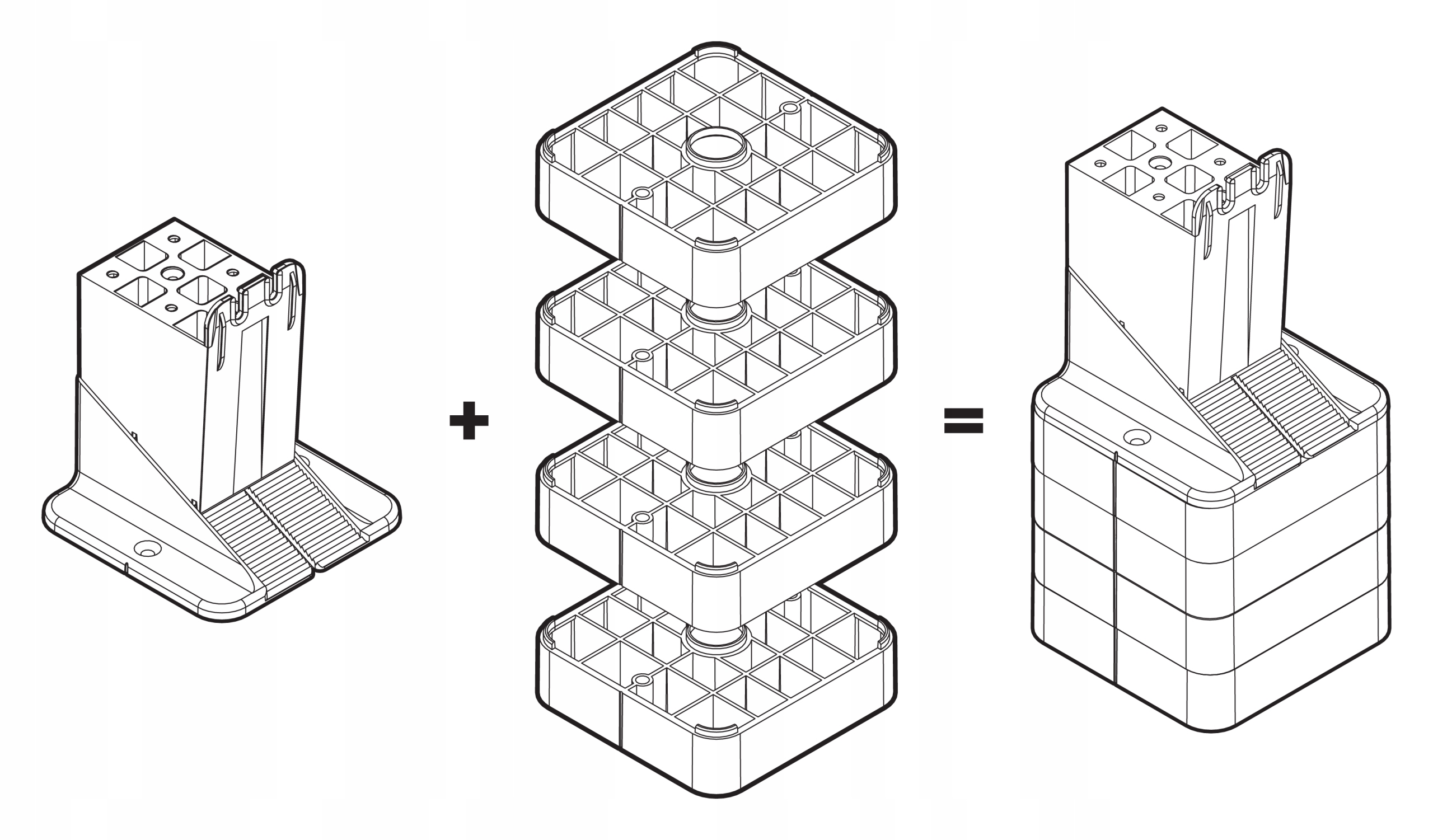 Кронштейни RAPTOR складаються з двох основних елементів - клина та основи. Висота від 125 мм створюється шляхом додавання подовжувальної основи до основних опор.