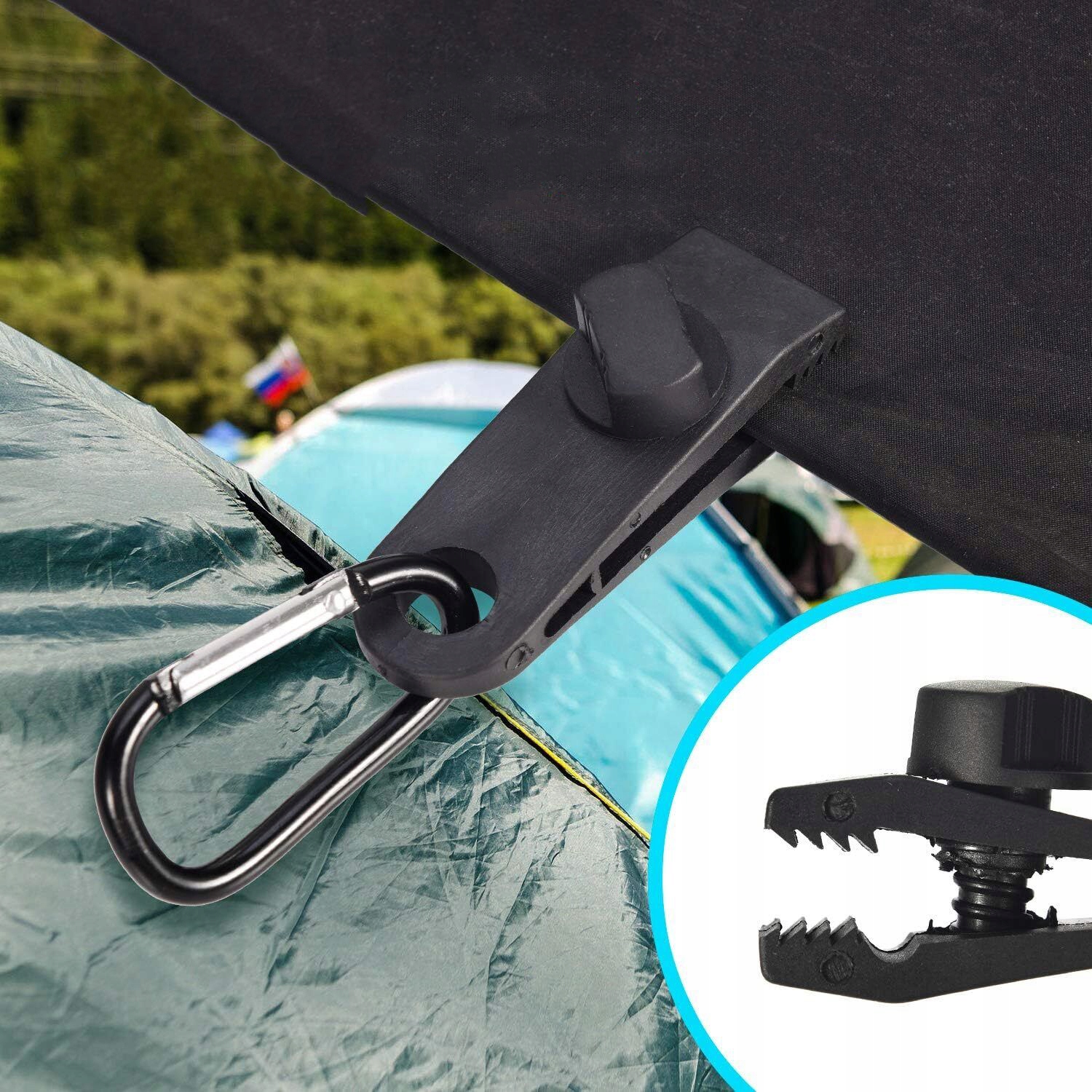 🏕 Конструкція з зубами крокодила мундштука: Унікальна конструкція з крокодиловими зубами забезпечує великий укус, який може бути міцно укусом, який може бути міцно укусом, не -слайпом і не падає, і в той же час не пошкоджує намет, він зберігає його стабільним. В кінці затискача є отвір, з яким ви можете підключити металеві кнопки або мотузки.