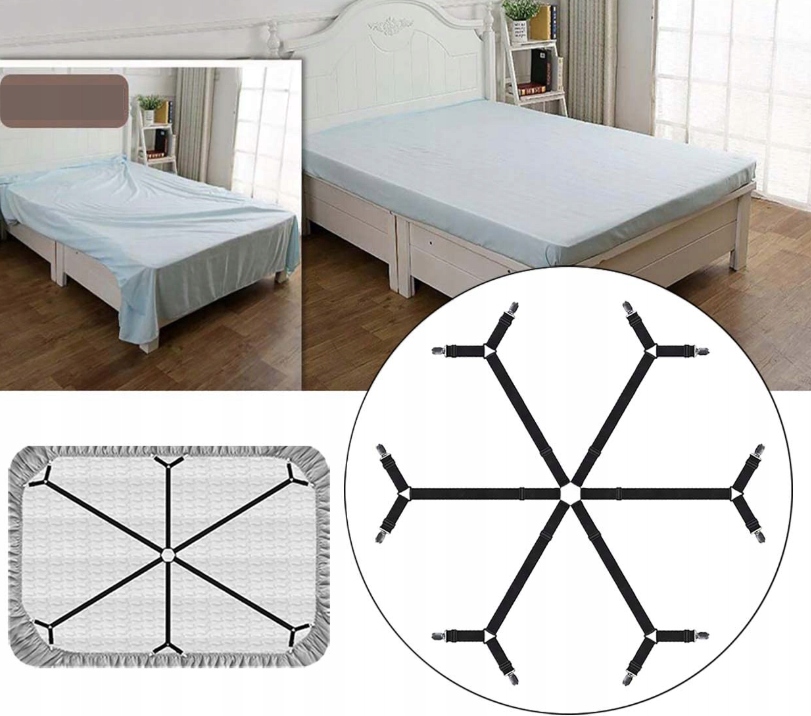 Попрощайтеся з безладними аркушами: Після використання наших професійних кліпів для аркушів ви можете позбутися від зморшок або брудної постільної білизни вранці. Тому що ми вдосконалили матеріал для кліпів, затискач, що з'єднує та регулювала пряжку.