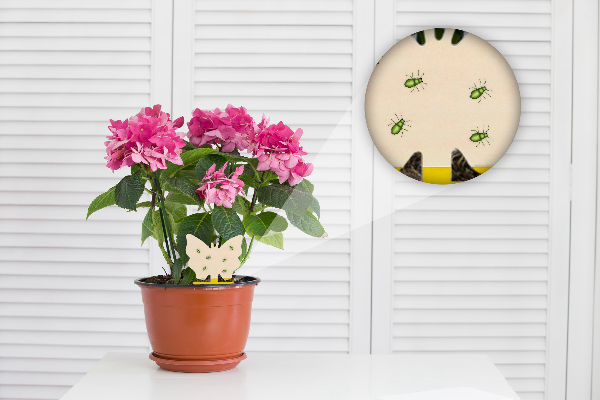 Цей продукт призначений для захисту рослин від таких шкідників, як попелиця, оранжерейна борошниста роса, блішки, медоноси, трипси, різні мухи та численні шкідники рослин. Продукт ідеально підходить для використання вдома: для квітів у горщиках, а також у садах, де квіти знаходяться під укриттям, а також у теплицях. Засіб простий і швидкий у використанні.