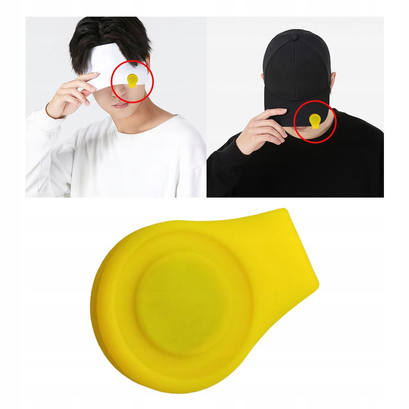 Klips do czapki z markerem do piłek golfowych. Można go przymocować do daszka. Lekki żółty putt