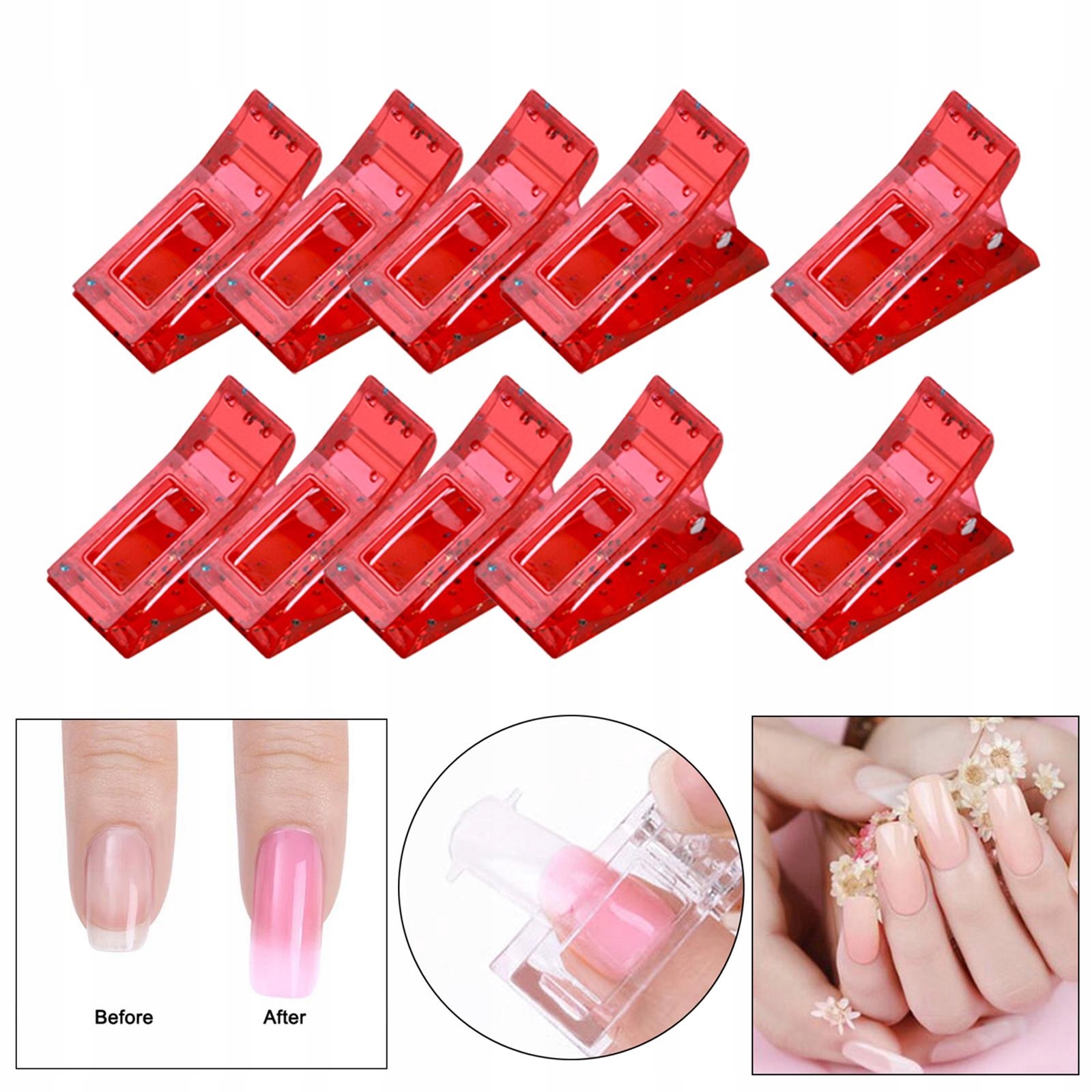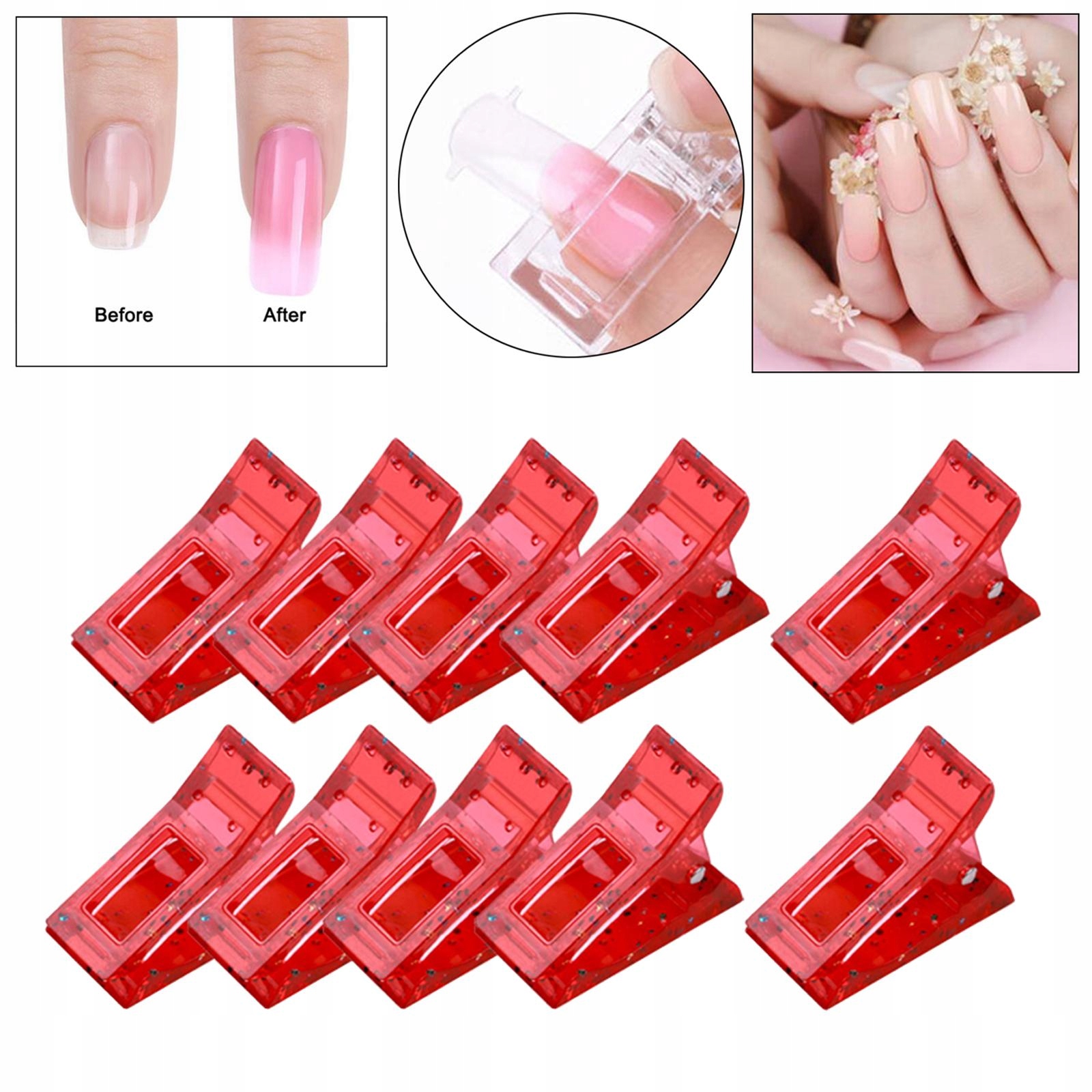 Klips do końcówek do paznokci Szybko budujący plastikowy palec Narzędzie do manicure UV 10 szt. Czerwony