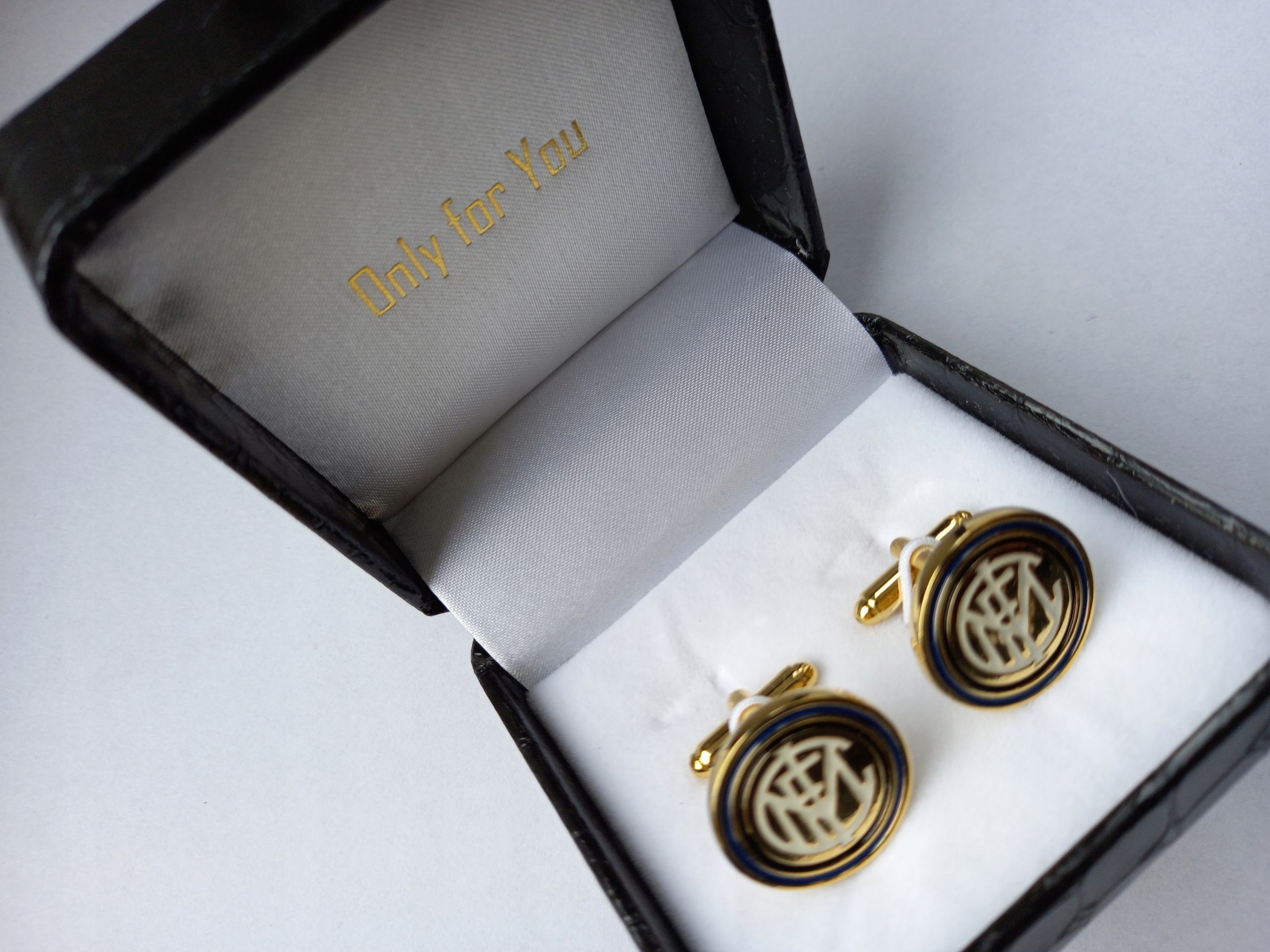 Чудовий оригінальний набір із пари запонок для сорочки від Exciting з ексклюзивної обмеженої серії Only for You. Запонки виготовлені з дорогоцінного металу з логотипом футбольної команди FCI Inter Milan, як на фото.