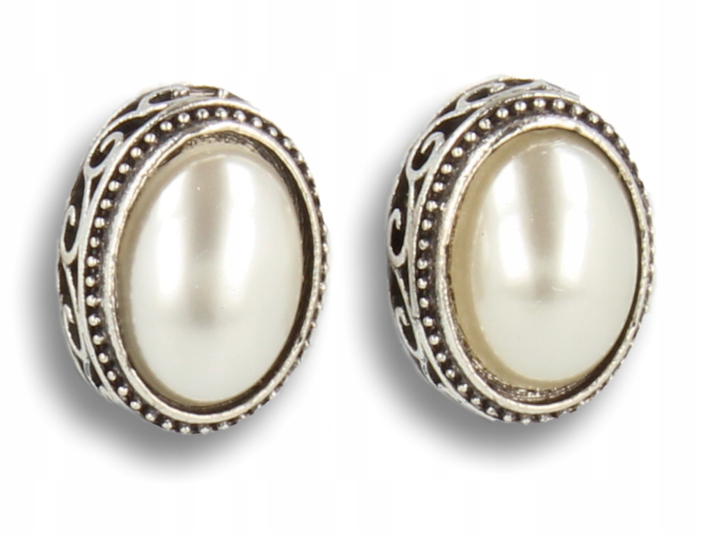 KLIPSY DO USZU SREBRNE OWALNE W STYLU VINTAGE
