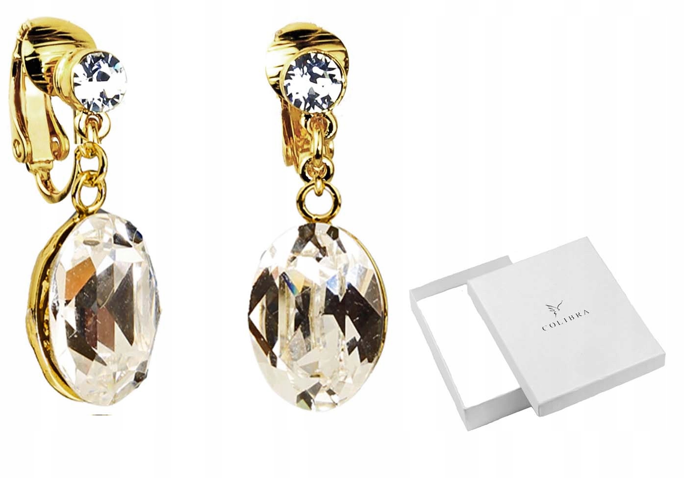 KLIPSY ZŁOTE WISZĄCE Z DUŻYM KRYSZTAEM NA USZY CYRKONIE EFEKTOWNE