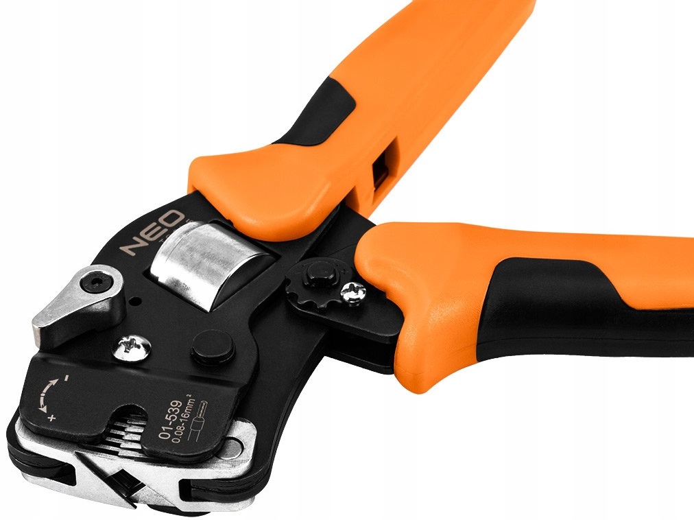Практичні обтискні кліщі для наконечників від бренду NEO, рекомендовані кожному електрику. Виготовлені з хромованадієвої сталі, їх загальна довжина 230 мм. Саморегулюючі губки з параметрами 0,08 - 16 мм2 пристосовані для роботи з малими та великими гільзовими з'єднувачами та електричними кабелями AWG 26-5.