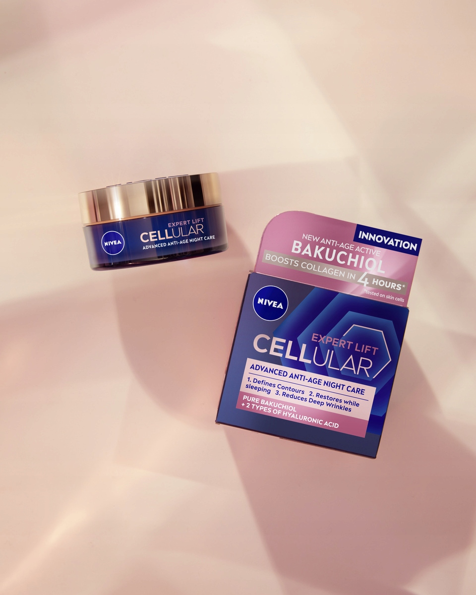 клітинний експерт NIVEA Antile Anti-Age Night Cream містить комбінацію сильних антивікових інгредієнтів, які діють глибоко на клітинному рівні, роблячи шкіру молодшою. Чистий бакучіол, активний анти -старе інгредієнт від NIVEA, підтримує процеси, що стимулюють вироблення колагену в клітині через 4 години після використання*. Крем для шкіри допомагає відновити щільність шкіри. 2 типи гіалуронової кислот-мікромолекулярної, відомі своїми зволожуючими та згладжувальними властивостями, допомагають зменшити зморшки. Крем для обличчя Nivea робить шкіру розслабленою, помітно більш гладкою та еластичнішою, а контур обличчя більш чітко окреслений. Після 2 використання зморшки помітно знижуються. Шкіра виглядає молодшою, розгладжена і м’яка на дотик. Через 4 тижні шкірний бар'єр зміцнюється і готується для підтримки запобігання процесам старіння шкіри.