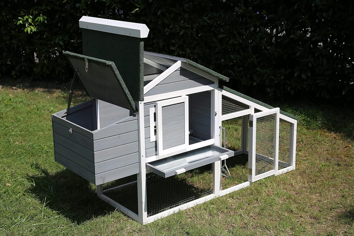 Цей гарний двоповерховий будиночок для кроликів надзвичайно практичний і функціональний. У ньому добре почуватимуться маленькі тварини, наприклад, кролики та курчата, а також морські свинки чи шиншили. На додаток до вигону без підлоги, який дозволяє випасати, є також захищена зона відпочинку, де тварини можуть сховатися від негоди. Дахи захищають тварин від хижих птахів, котів чи лисиць. На верхній рівень веде драбина. Він оснащений знімними висувними ящиками для легкого очищення. Двері, що замикаються, забезпечують зручний доступ.