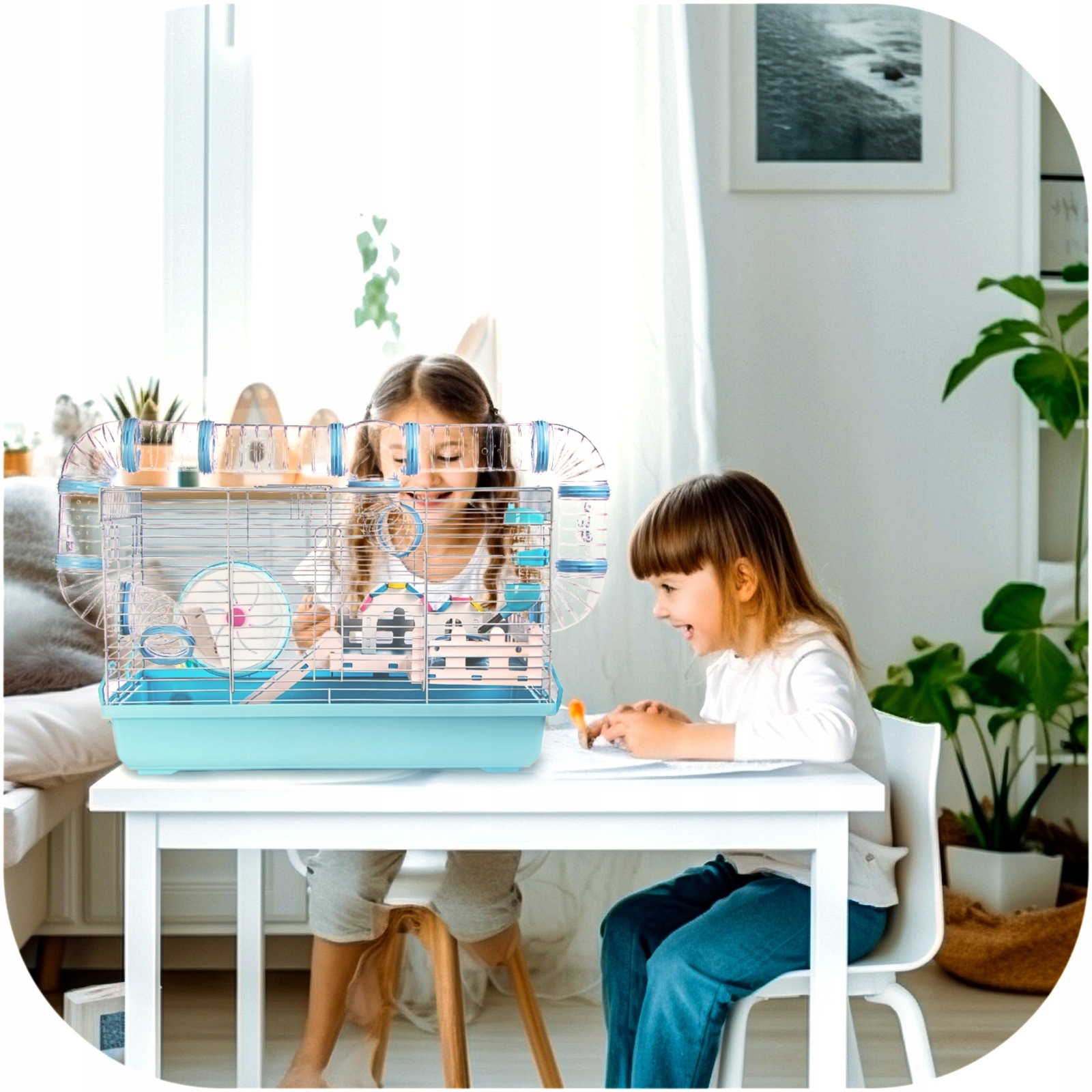 КЛІТКА ДЛЯ ХОМ'ЯКА З ОБЛАДНАННЯМ, ТУНЕЛЬ, КОЛЕСО, ЛІЙКА, БЛАКИТНИЙ БУДИНОК
